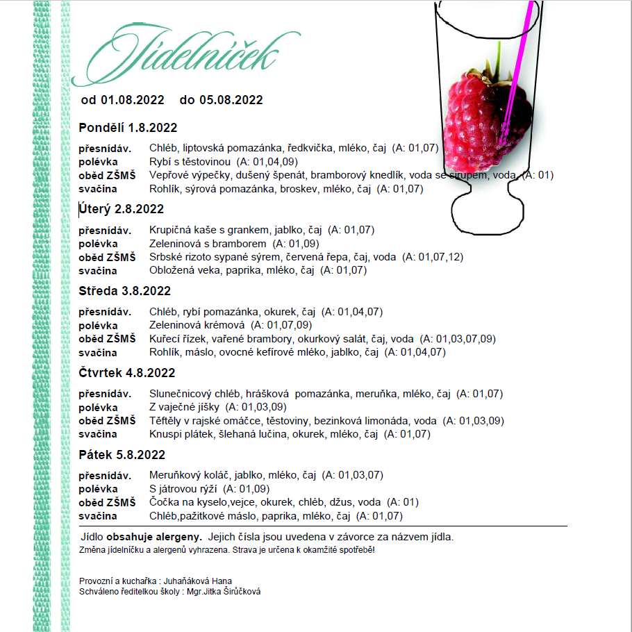 JÍDELNÍČEK 1. 8. - 5. 8. 2022