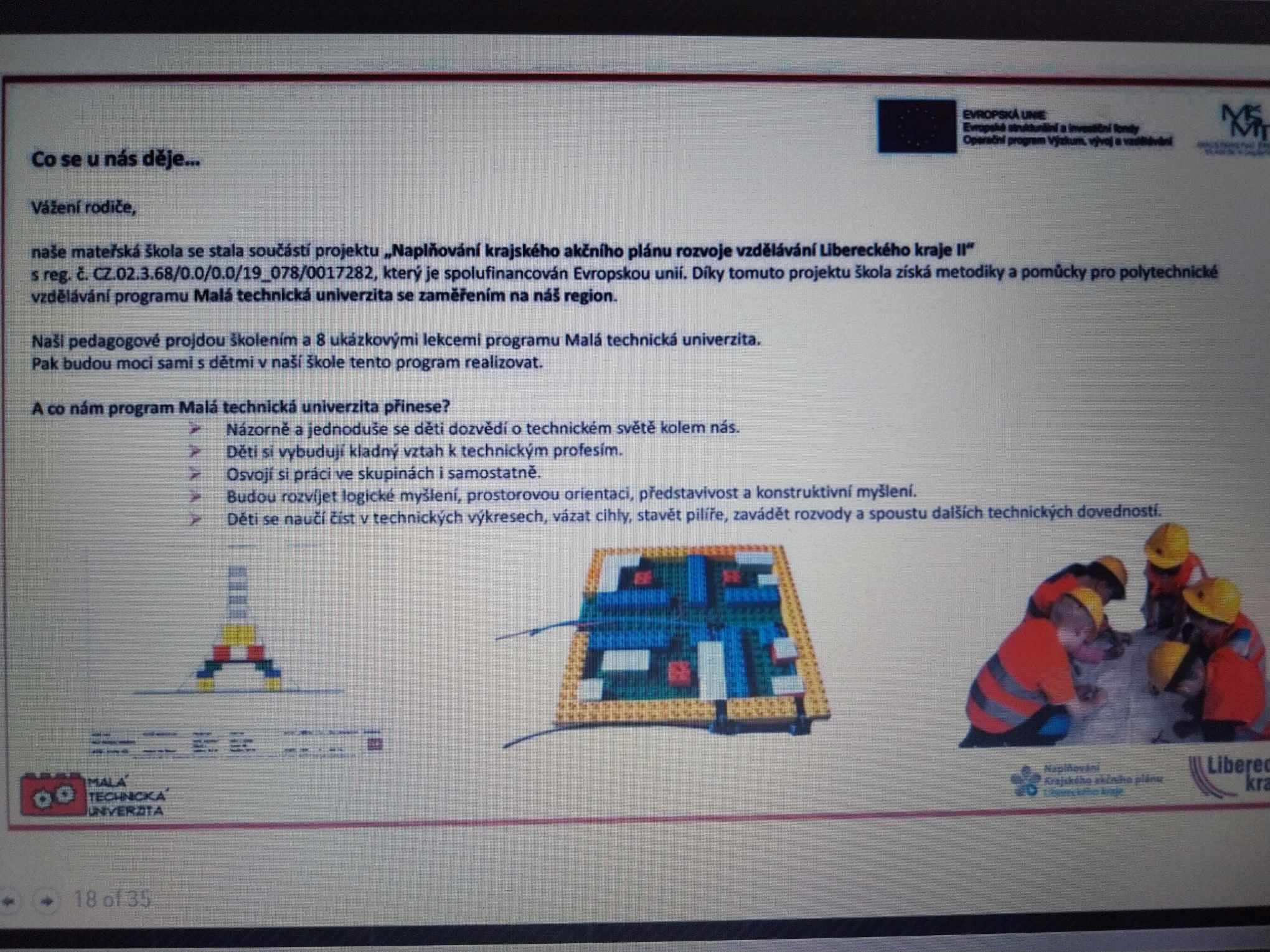 Naše mateřská škola se zapojila do projektu Malé technické univerzity.