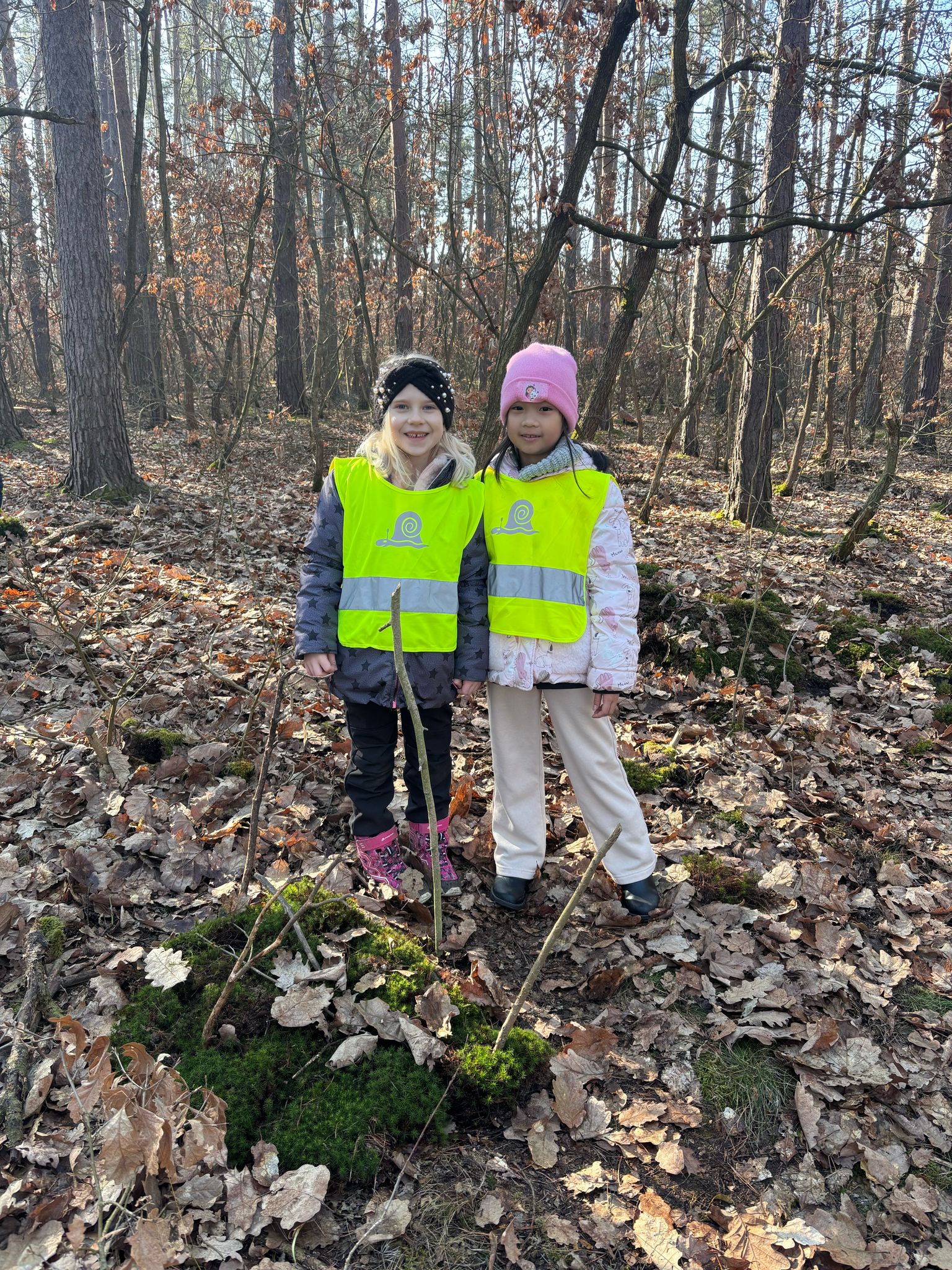 Naše cesta vedla k lesnímu hřišti, kde si děti s radostí pohrály na prolézačkách a houpačkách. Po krátké pauze na svačinu nás čekalo stavění domečků z mechu, klacíků a šišek. Děti zapojily svou fantazii a společně tvořily krásné příbytky pro lesní skřítky.