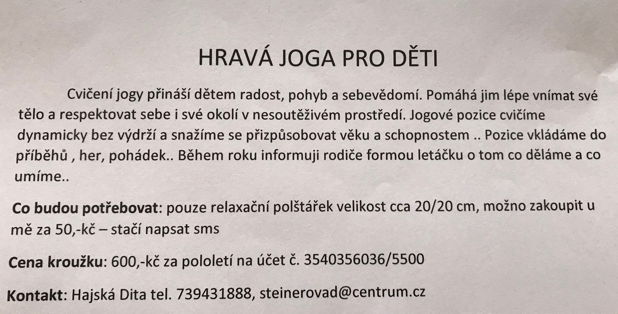 "Hravá jóga" (nadstandardní aktivita)