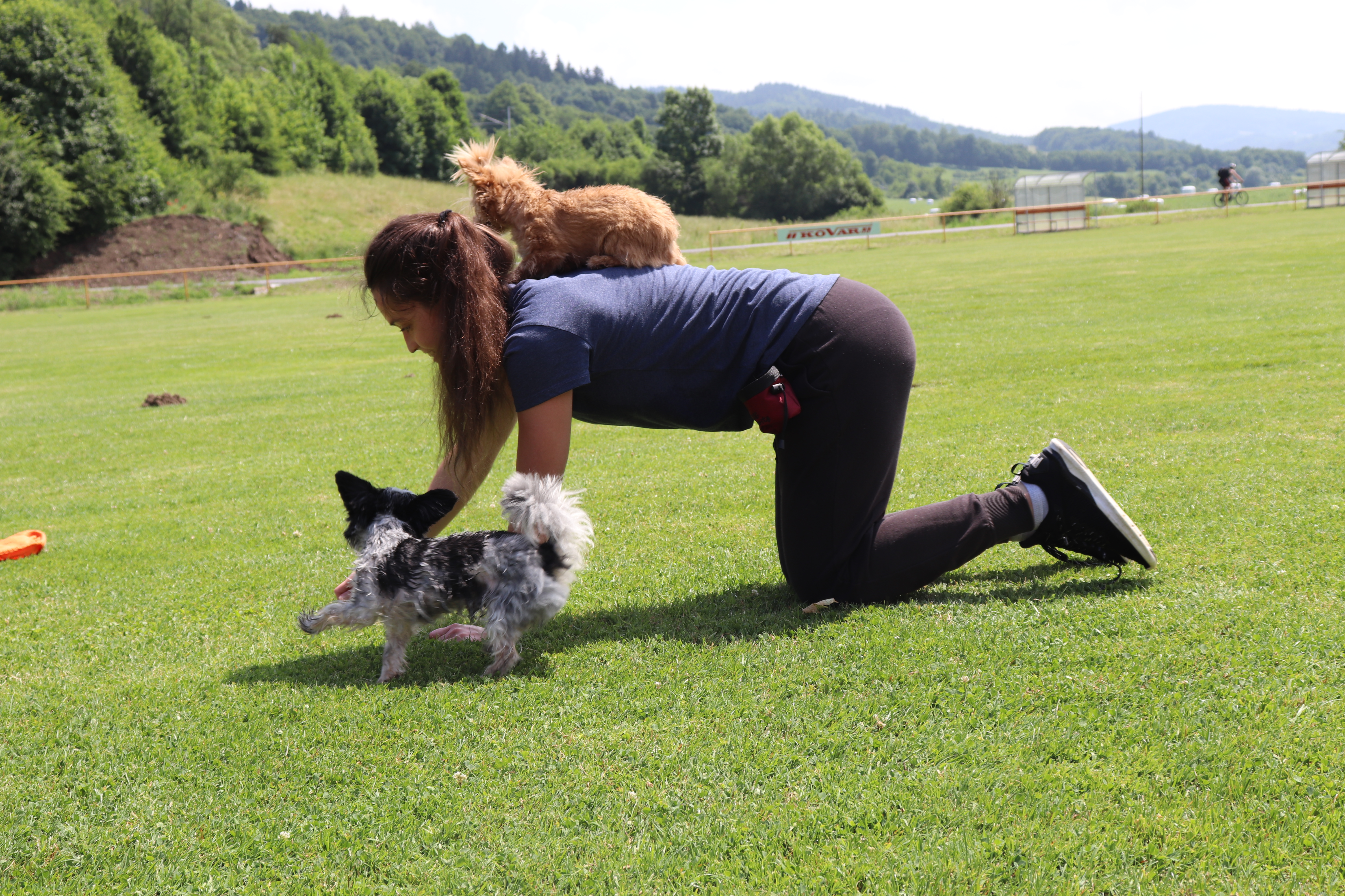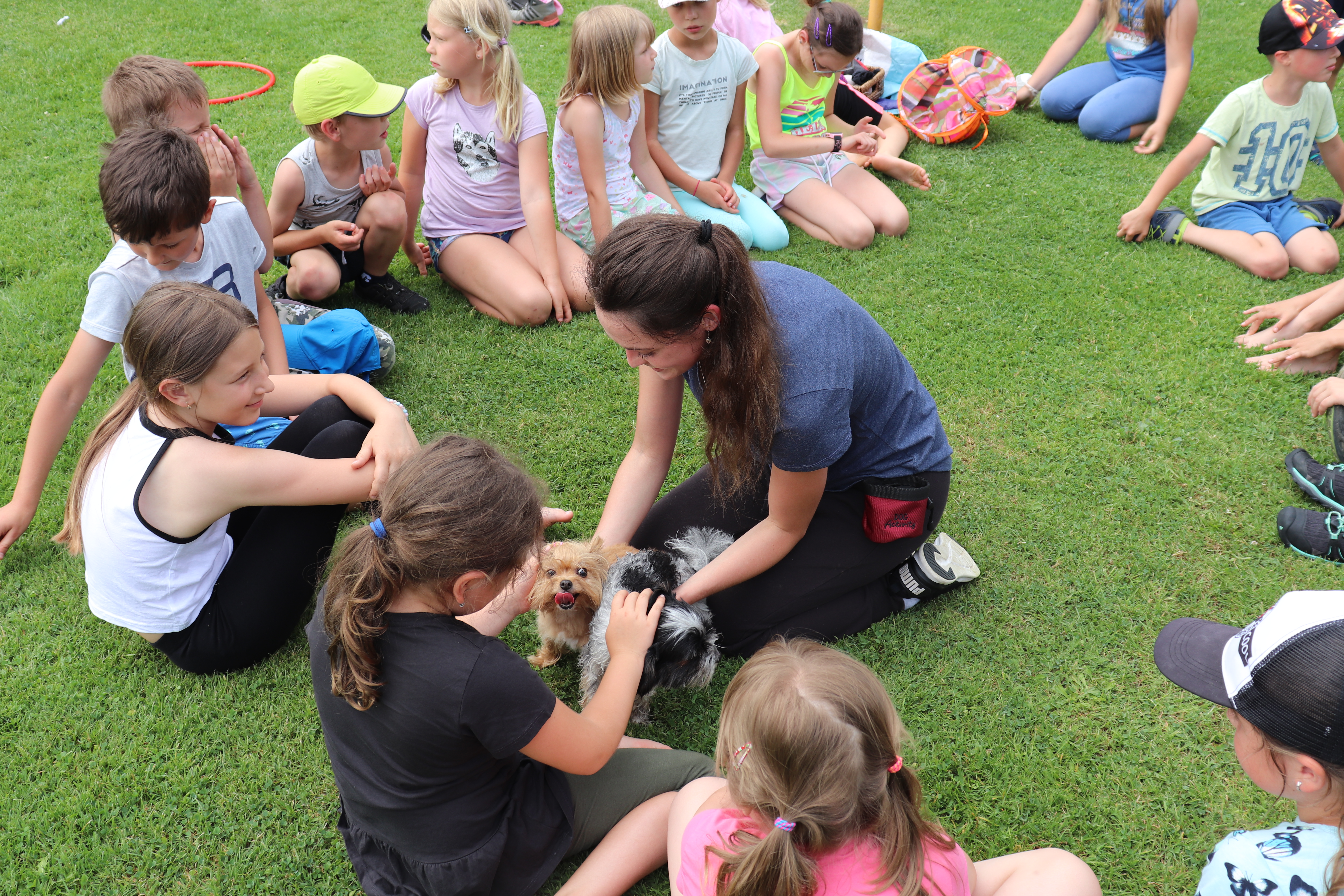 Dne 25.6. za námi přijela cvičitelka se psy a předvedli nám disciplínu Dogdancing. Dva malí jorkšírští teriéři předváděli skvělé triky a srandičky. Překonávali také překážky, které připravily děti, mazlili a fotili se s námi. Byli roztomilí, o čemž se můžeta přesvědčit na fotografiích níže.