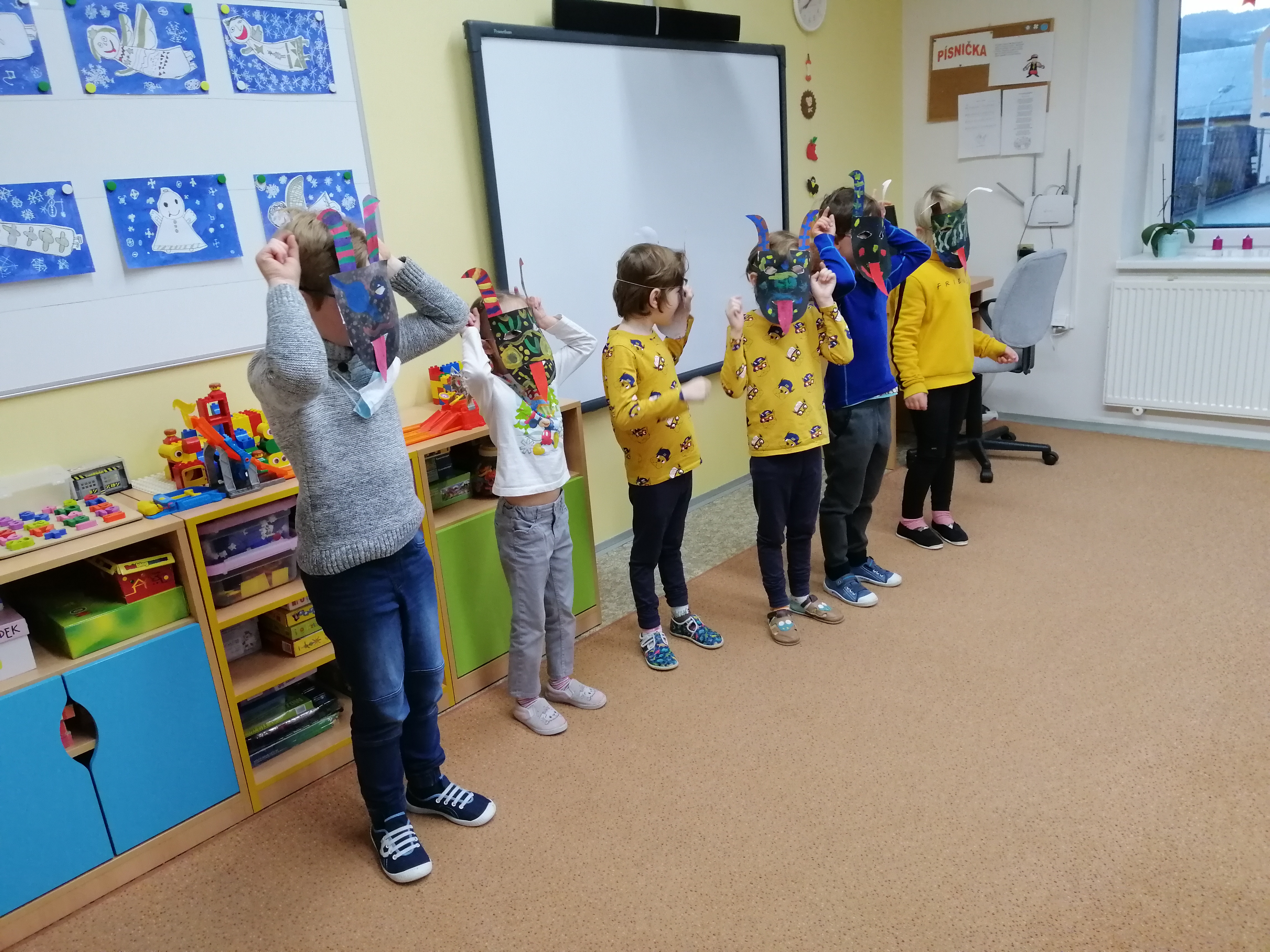 Svátek Mikuláše připadá tento rok na pondělí 6.12., ale v naší škole navštívil děti už v pátek 3. prosince. Tradice, kterou minulý rok přerušila on-line výuka, byla zase obnovena a žáci 5. ročníku se na role Mikuláše, andělů a čerta velmi těšili. Pilně nacvičovali a učili se text, všichni přistoupili k této výzvě zodpovědně a s radostí. Většina kostýmů k tomuto vystoupení je trvale ve škole a co pochybělo, si herci přinesli z domu. Páteční ráno byla celá družina vzorně vystrojena a těšila se na návštěvu jednotlivých tříd a školky. Protože čert byl jenom jeden a svoji roli hrál jako hodný pekelník, děti nebyly vystrašeny a poselství o vítězství dobra a lásky z úst Mikuláše a andělů zaznělo ve slavnostní a milé atmosféře. Děti recitovaly básničky, zpívaly písničky a dostaly nadílku s výzvou, aby stále byly hodné a navzájem si pomáhaly.
