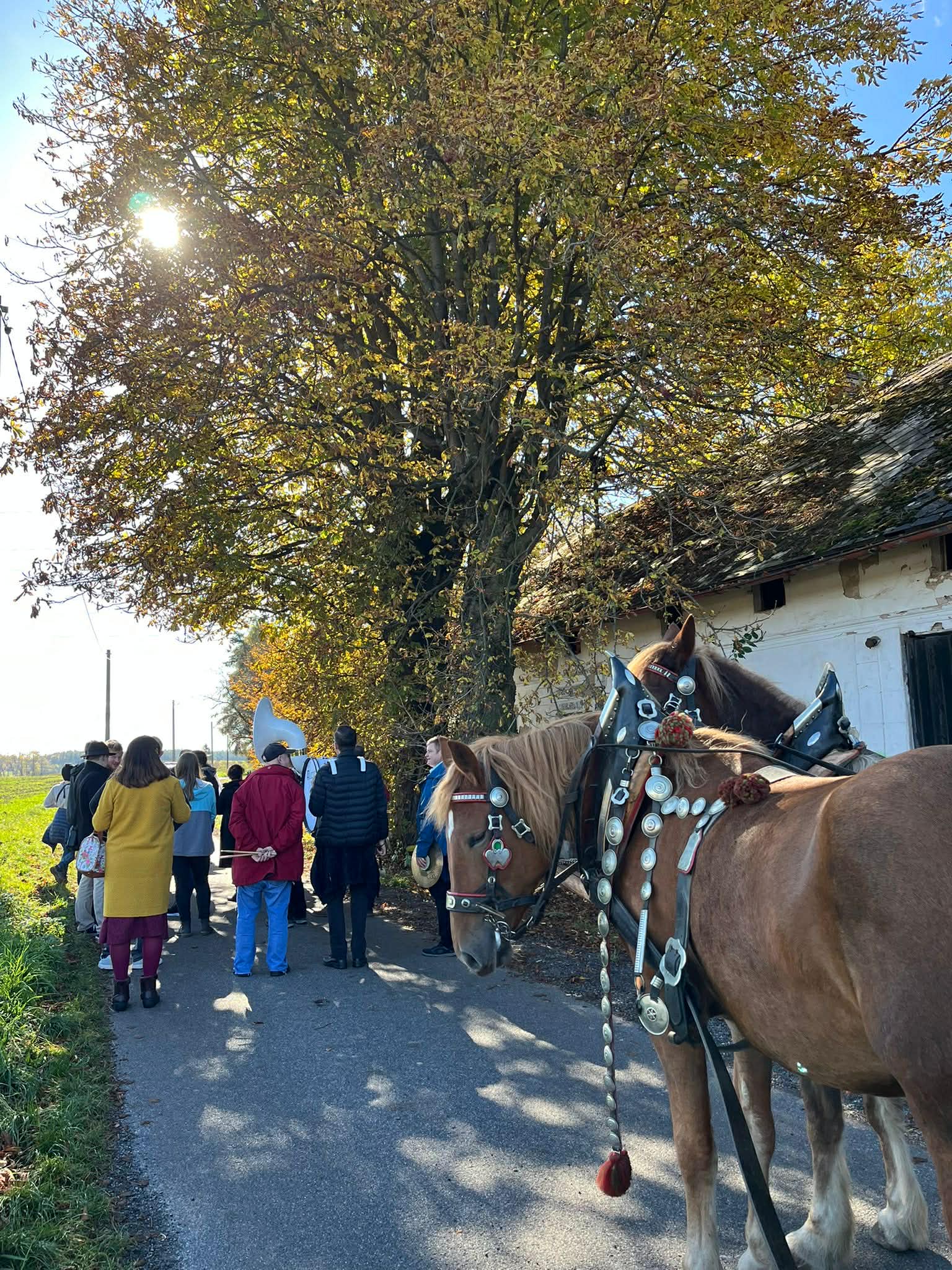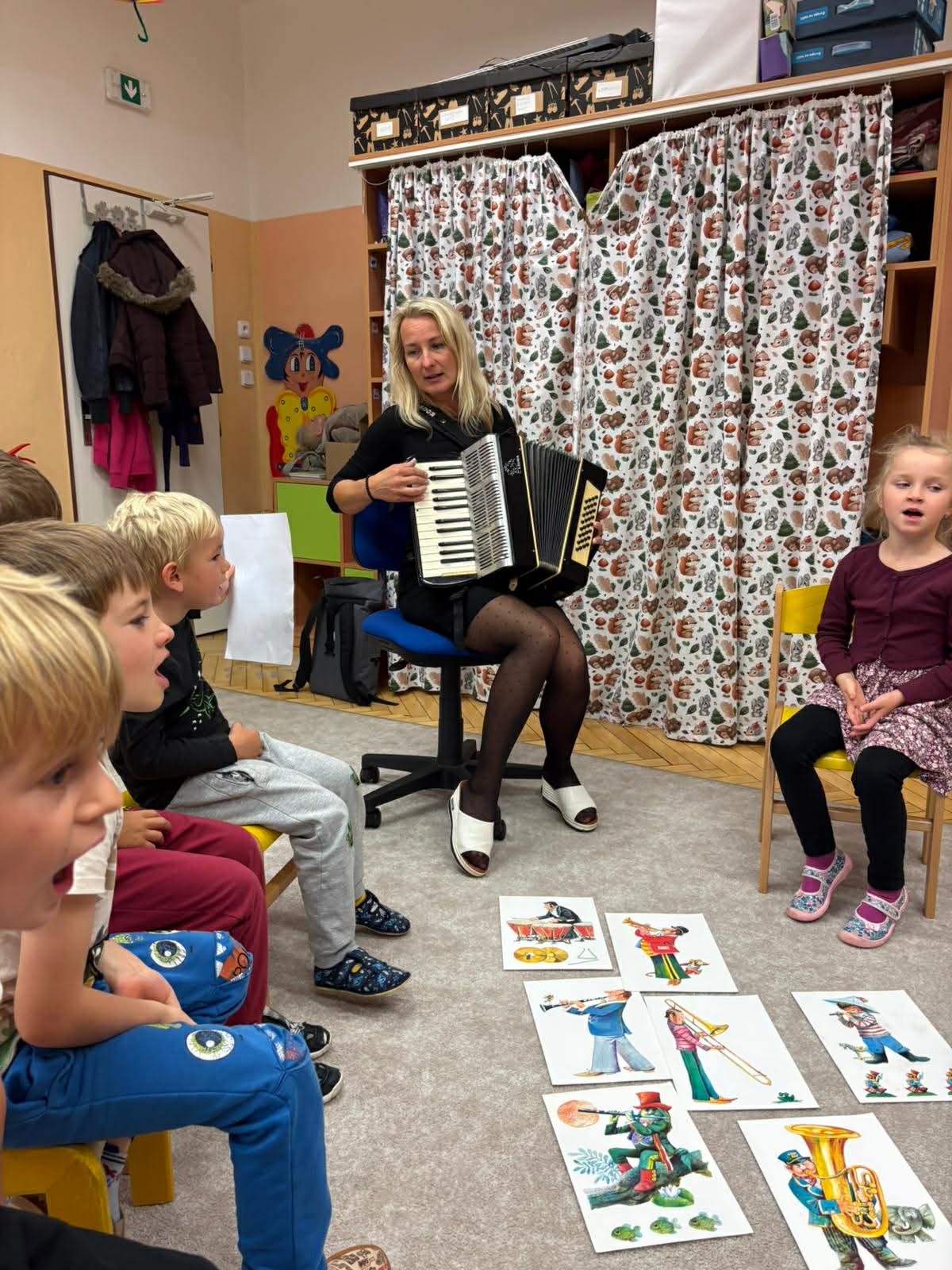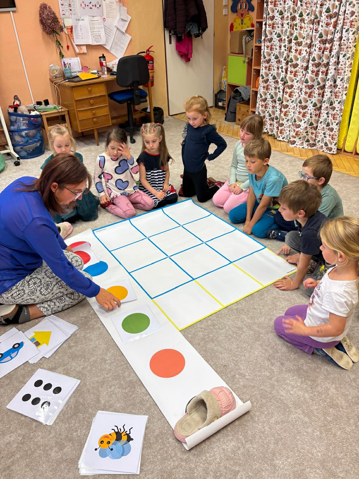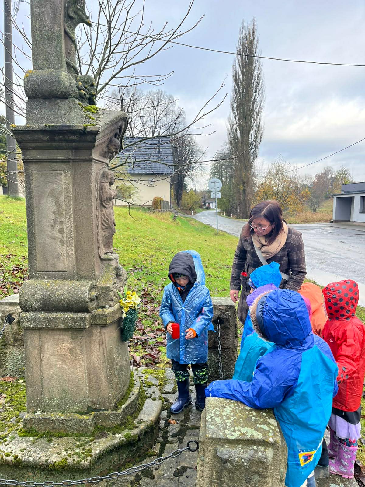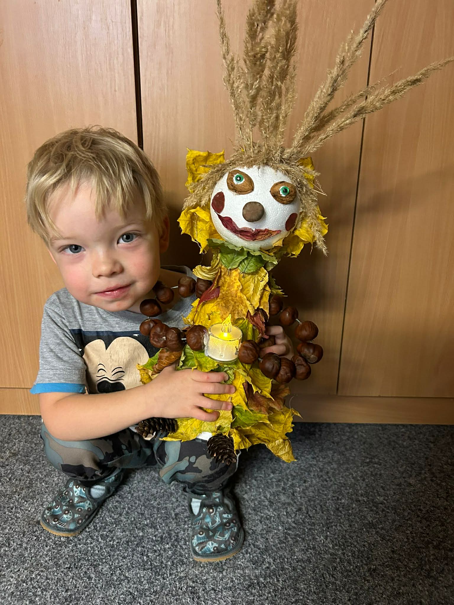 Nový školní rok začal krásným, teplým podzimním počasím, tak jsme s dětmi mohly užívat krásy naší školní zahrady a přírody kolem nás. Procházky do přírody, lesů a k místním rybníkům, vypouštění rybníka Špinka, hledání stop a pokladů na dně vypuštěného rybníka byl obrovským zážitkem. Zúčastnily jsme se tradičního olešenského posvícení, kde si děti užily jízdu na povozu taženým koňmi. Při podzimní dílničce nám rodiče pomohli vyzdobit venkovní prostory kolem mateřské školy. Další vydařenou podzimní akcí byla drakiáda u místní sokolovny, kde si na závěr děti s rodiči opekli buřty. Podzim nám také odstartoval náš první sportovní kurz, kterým bylo bruslení na zimním stadionu v Náchodě. Následovaly další kurzy - plavaní v trutnovském bazéně, lyžařský kurz v Mladých Bukách a závěrem nás čeká in-line bruslení v naší vesnici pod vedením lektorky Jany Benešové. Podzim završila oslava Halloweenu, dlabání dýní, čarování, převleky a vzpomínka na naše zemřelé - Dušičky.