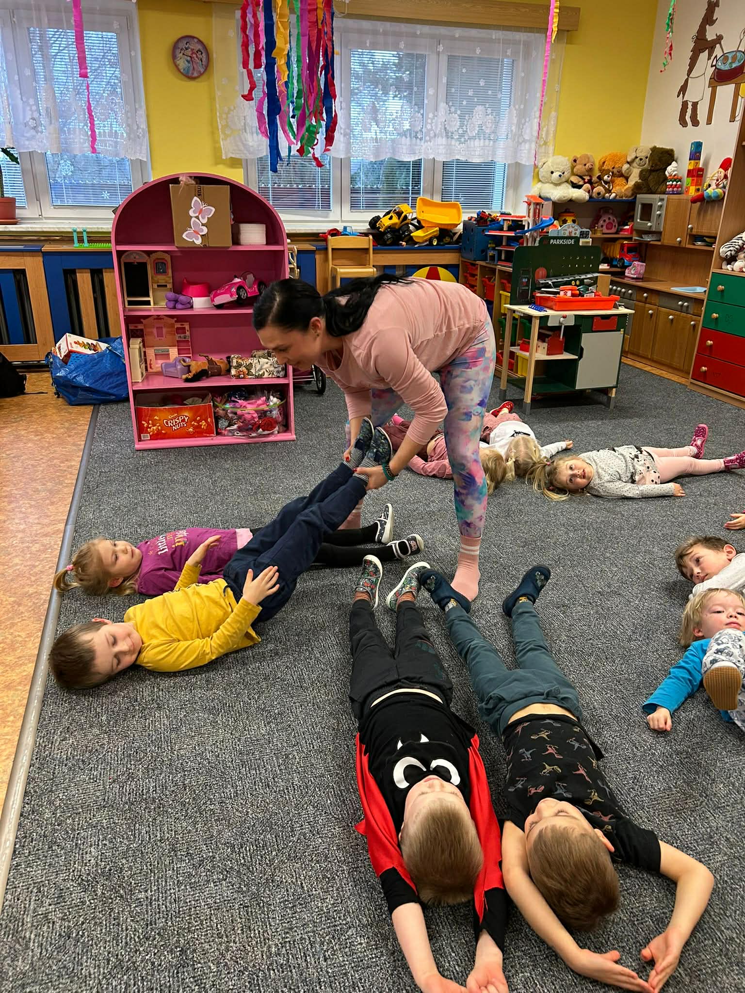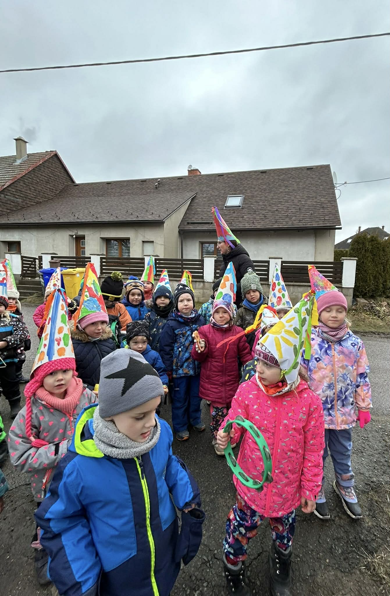 Po novém roce jsme užívaly oslav karnevalu, barevného týdne, masopustu, vynášení Morany a velikonoční koledy dívek i chlapců. Velké oblibě se těší exkurze u hasičů Červený Kostelec a kadeřnická činnost paní Fabiánové, kterou jsme s dětmi absolvovaly a moc si užily. V letošním roce jsme započaly novou aktivitu v naší školce "Školková cestománie", úkolem této aktivity je poznávat krásy našeho kraje a užít si společně krásné výletní chvíle. Prvním nádherným místem byl podorlický skanzen Krňovice, kde pro nás byl připraven program s výrobou mýdla. Další oblíbenou akcí v naší školce je pálení čarodějnic, kterou slavíme na naší zahradě společně se základní školou. Největší odměnou za celý úspěšný školní rok je pasování našich předškoláků a noční přespávání.
