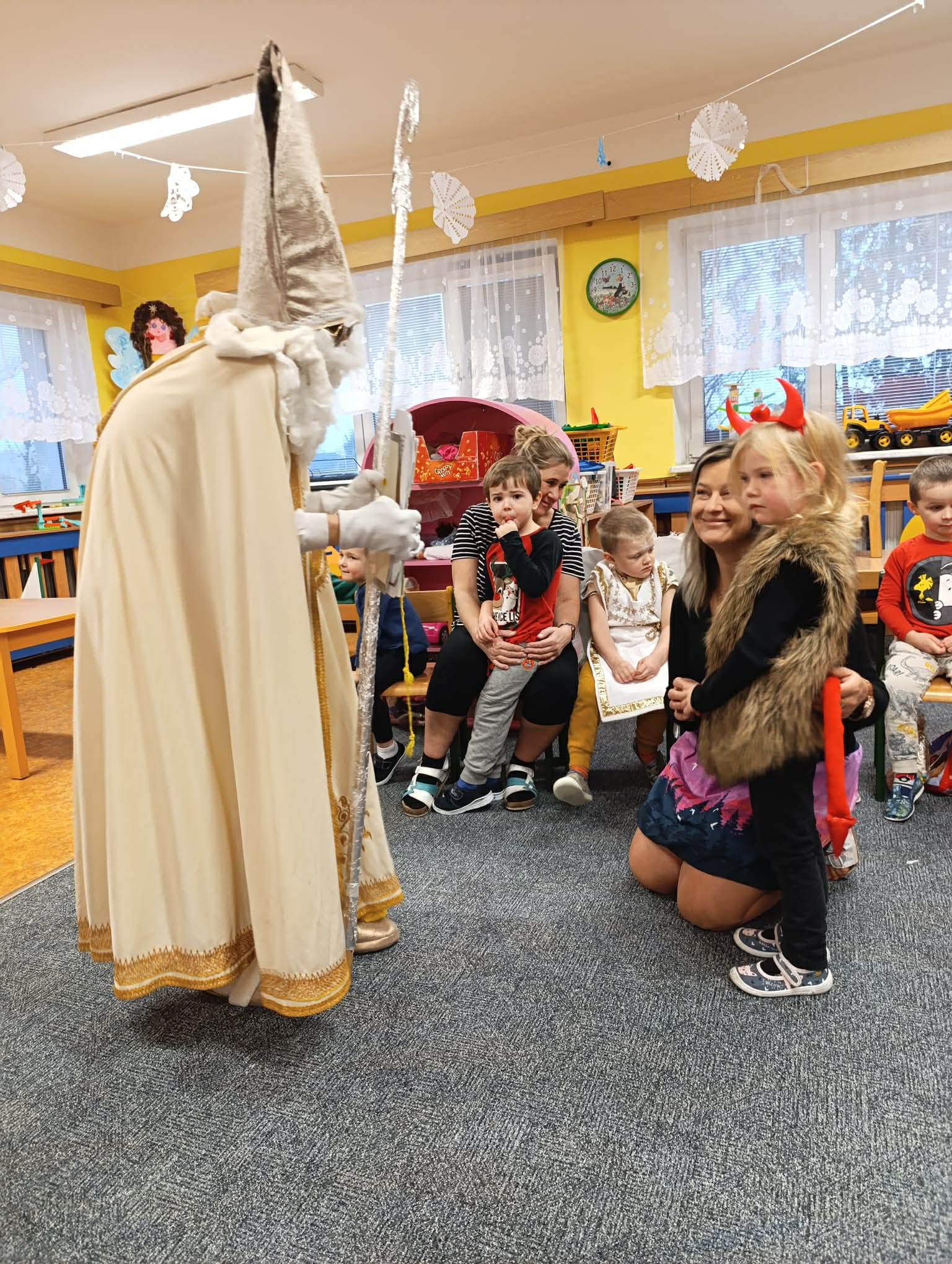 Advent a Vánoce děti oslavily vystoupením u místního hostince a v pečovatelském domě Sv. Jakuba Červený Kostelec. Svatá trojice Mikuláš, čert a anděl děti obdarovali a nezapomněli zamířit také na děti do základní školy. Vánoční zvyky, pečení cukroví nám zkrátily čekání na Ježíška, který obdaroval naše děti ve třídě Broučků i Medvědů.