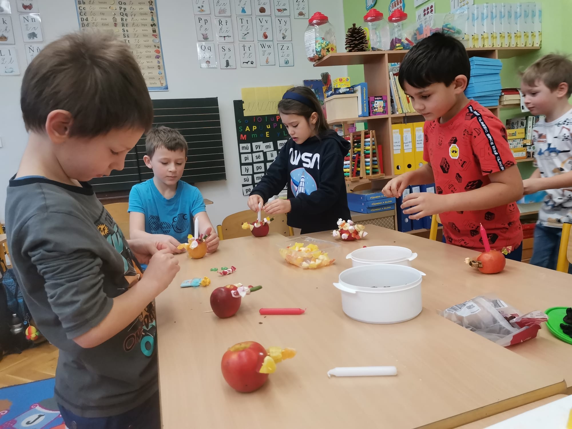 Čtvrtek 22.prosince byl poslední den školy v závěru roku 2022. Tento den jsme si užili především vánočně. Od rána na žáky ve třídě čekala nadílka pod stromečkem. S rozbalováním jsme počkali až do svačiny. Abychom si zkrátili čas, vyrobili si žáčci 1. a 2. třídy lodičky ze skořápek ořechů a vánoční svícen z jablka se svíčkou. Ten si každý ozdobil podle svého. Svícínek jsme zdobili sušeným ovocem, želé bonbóny a smrkovými větvičkami. Při vyrábění jsme si povídali o vánočních zvycích, o přáních a dopisech pro Ježíška. Po svačince nastal konečně ten nejočekávanější okamžik-rozbalování dárků. Dárečky v podobě interaktivních her a stavebnic si žáci hned vyzkoušeli. Nejvíce se jim líbily programovatelné myšky, sbírání sýrů a špikovací úkoly. Tyto interaktivní hry budeme využívat po celý školní rok v rámci hodin matematiky a prvouky. Poslední dopoledne jsme si moc užili.