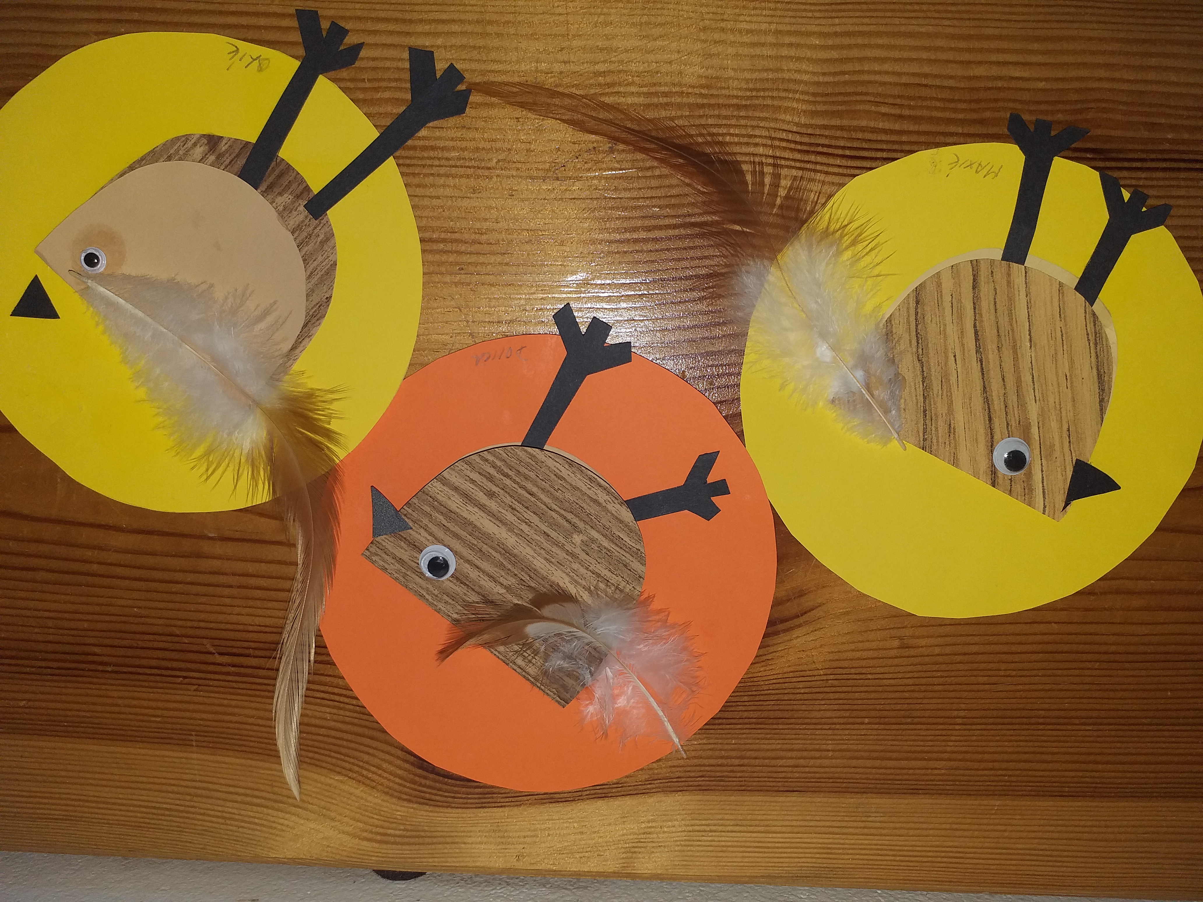 Ve čtvrtek 6.3 jsme s dětmi ze třídy Myšáků prožili projektové dopoledne s názvem Vrabčí den. Nejprve jsme si poslechli čtenou pohádku z knihy Pohádkový dědeček (autor E.Petiška) s názvem O nenasytném vrabci. Děti bedlivě poslouchaly celý příběh, který po skončení čtení zkusily vyprávět svými slovy. Vysvětlili jsme si poučení z příběhu, kdy je lepší se rozdělit a být s kamarády. Poté jsme si řekli několik zajímavostí o životě vrabce polního a vrabce domácího, prohlédli si několik fotografií těchto krásných ptáků a pomocí papírových peříček vyzdobili kabátek malovanému vrabci. Na závěr si děti vyrobily vrabce složené z papíru a ozdobené pravými peříčky, kteří pak vyzdobili prostory naší školky.