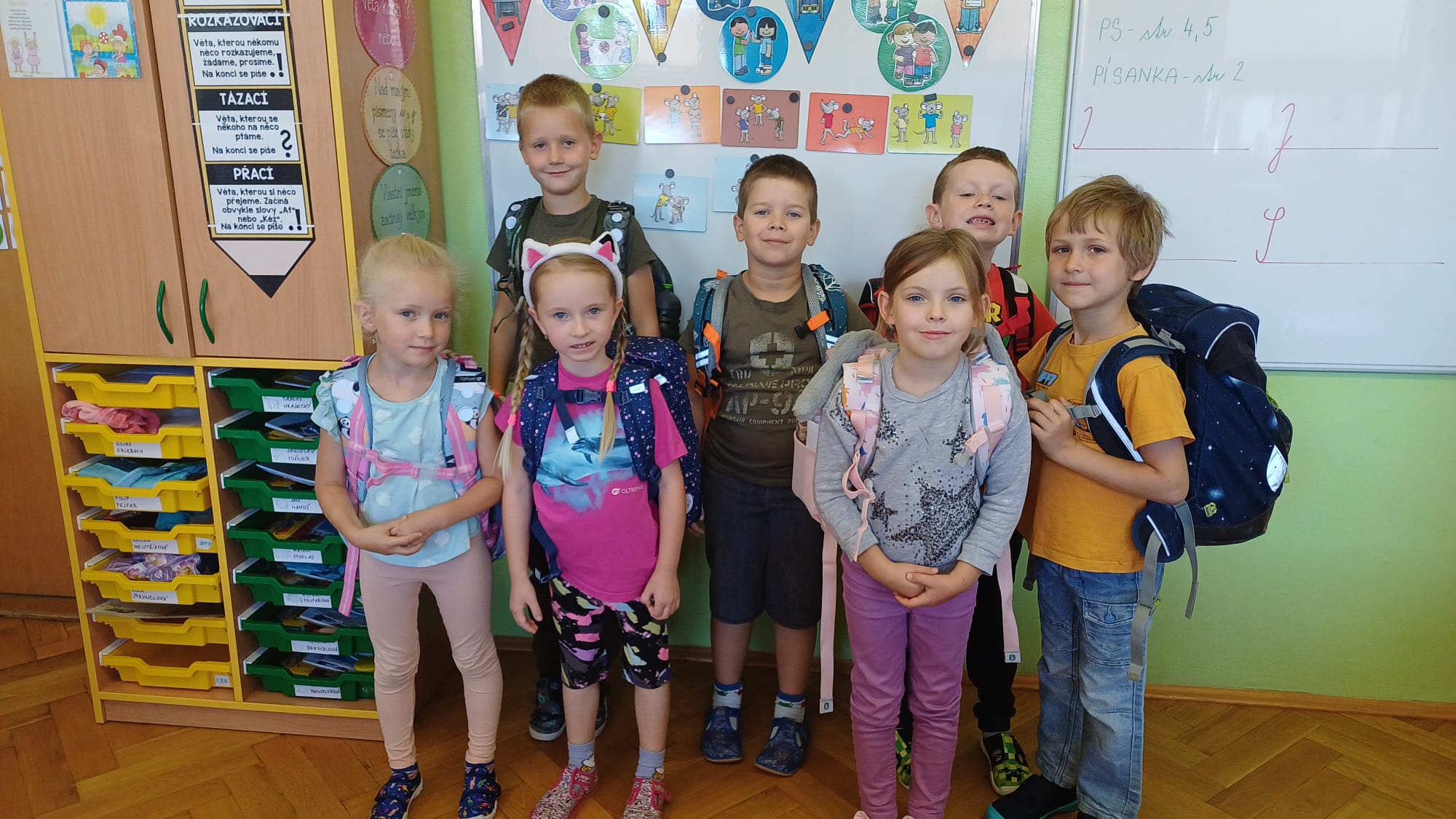 V pondělí 1. září jsme ve třídě ZŠ I. přivítali našich sedm prvňáčků společně se čtyřmi druháky. Prvňáčci přišli společně se svými rodiči a byli plni očekávání. Na úvod jsme si pro ně připravili malé překvapení v podobě tajné krabice. Každý z žáků si mohl sáhnout do krabice s otvorem a hádat podle hmatu co je uvnitř. Po krátkém hádání si sami z krabice vytáhli dvě myšky, které je budou celou 1. třídou provázet. Vymysleli myškám společně jména a každý se jim hezky představil. Na závěr si prvňáčci našli své značky a místo v lavici. V té pak měli za úkol vybarvit, podepsat a polepit svoji papírovou ruku. Všechny ruce jsme společně připevnili na provázek, jako důkaz spolupráce a soudržnosti třídy. Rodičům jsme předali nejdůležitější informace pro první dny ve škole.