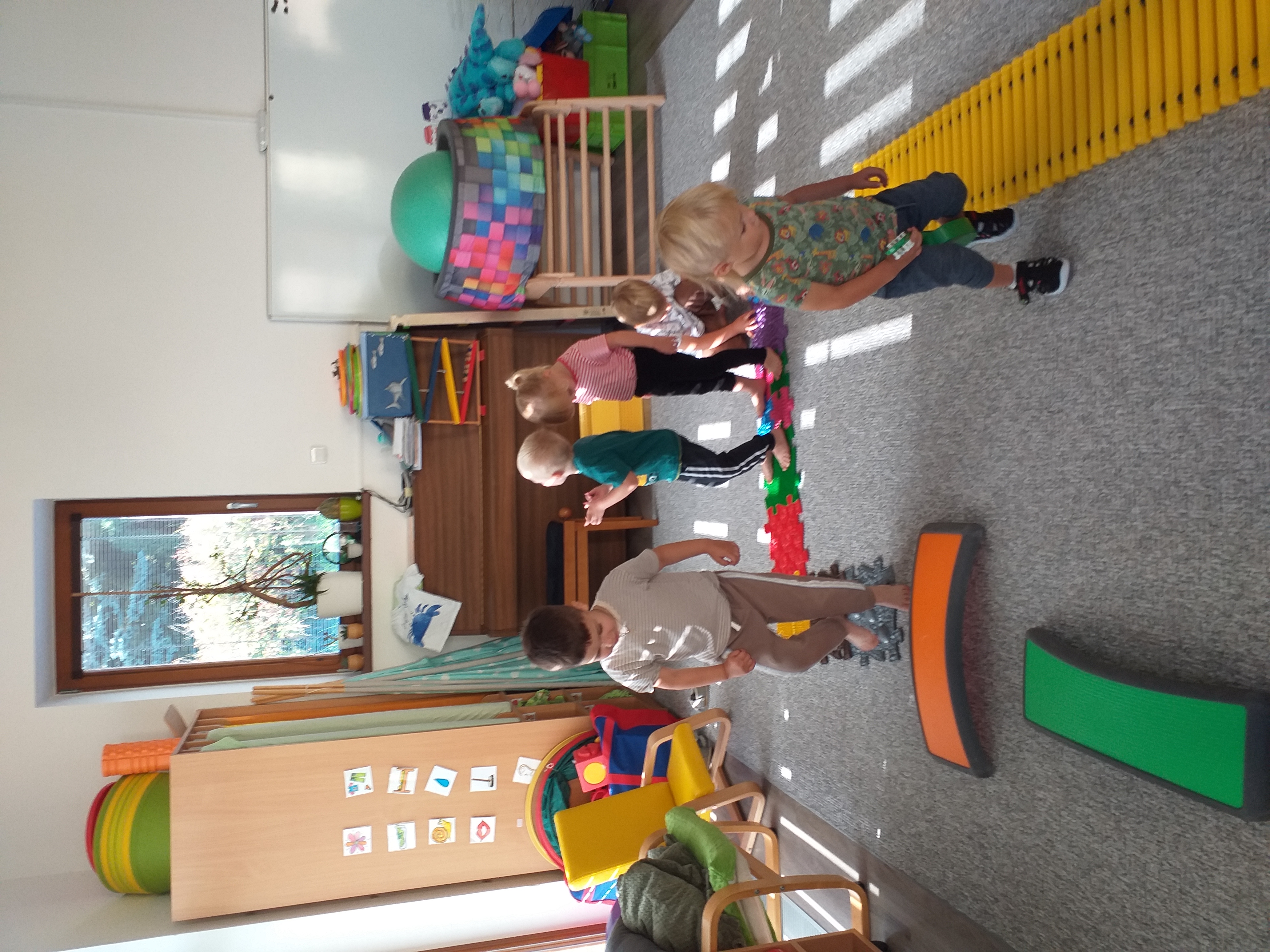 V polovině září jsme také zahájili s menšími dětmi cvičení neurovývojové stimulace (NVS) pod vedením Mgr. Chudobové z SPC Jičín, které je zaměřeno na primární reflexy a jejich odbourávání. Toto cvičení budeme s dětmi cvičit několikrát během týdne a každý měsíc se bude obměňovat příběh, který je k příslušnému reflexu vázán.
