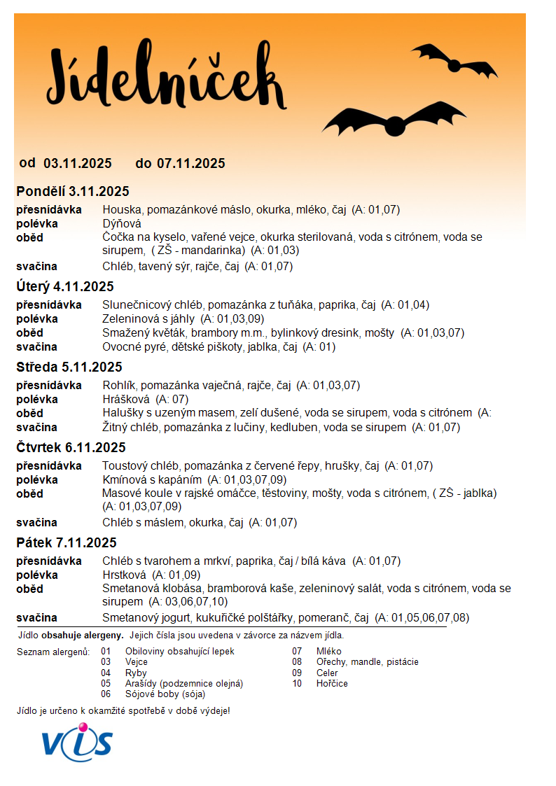 Jídelníček 3.11 -7.11. 2025