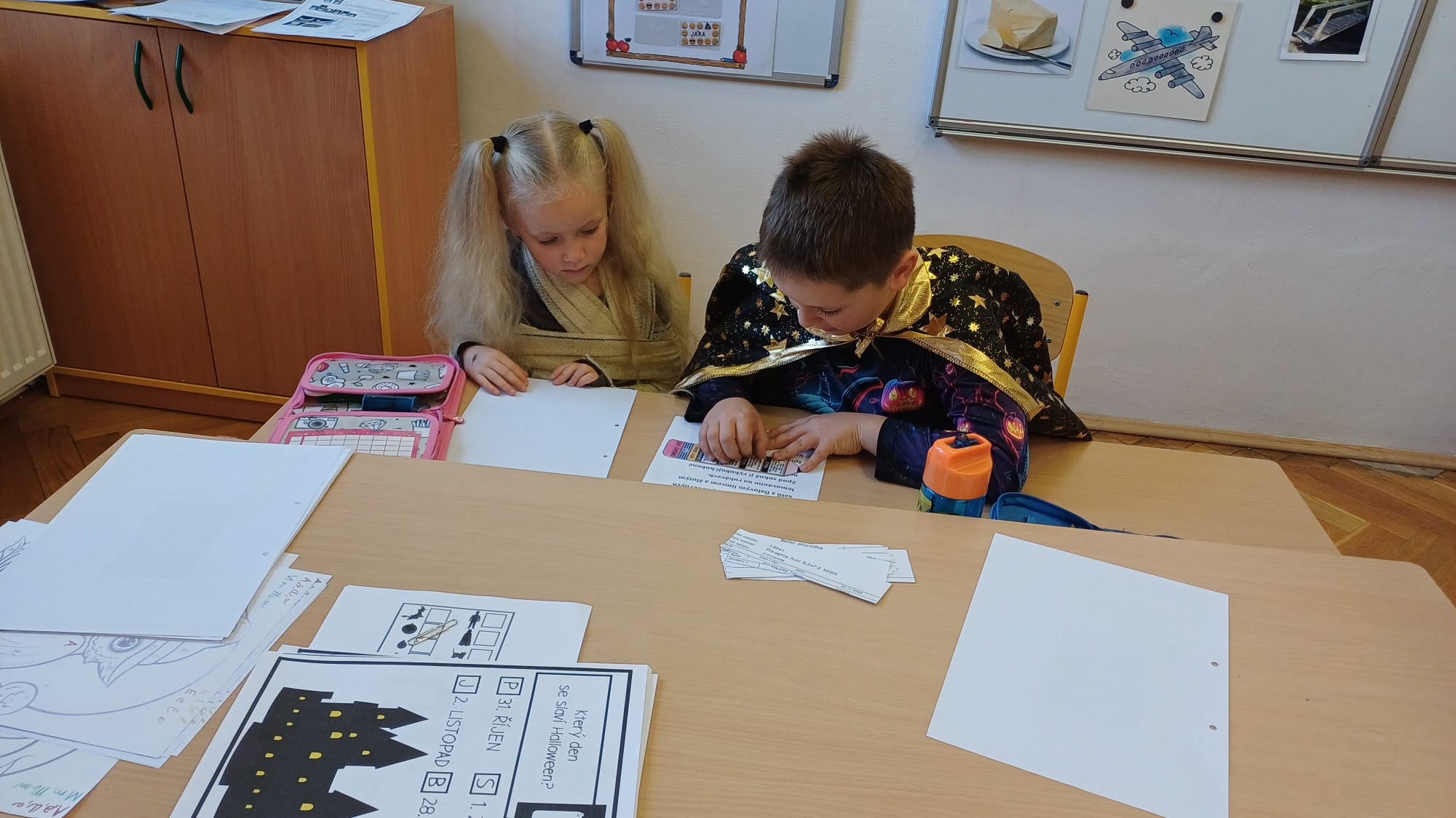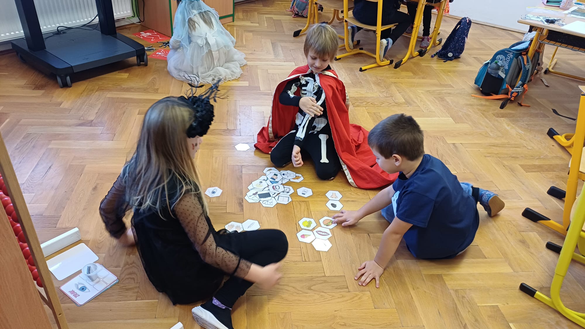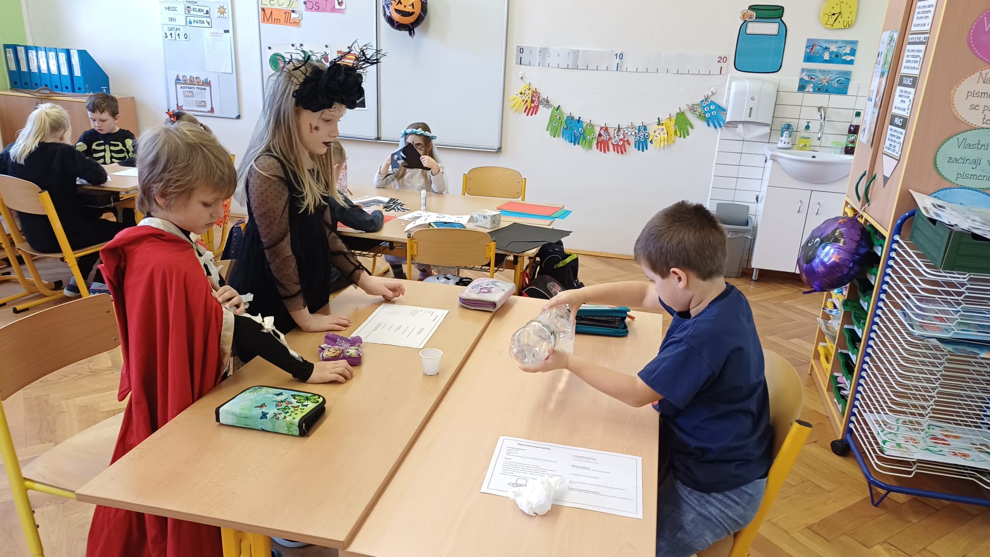Již druhým školním rokem u nás probíhají oblíbená centra aktivit, kde si děti zábavnou formou procvičují učivo a učí se nové věci. Témata center jsou velmi různorodá a zajímavá. Během podzimu jsme například již cestovali po Evropě, seznamovali se se stromy všemi možnými způsoby a nevynechali ani dětmi oblíbené halloweenské téma. Tentokrát se ke spolužákům ze starší třídy přidaly i děti mladší. Všichni jsme si to příjemně užili.