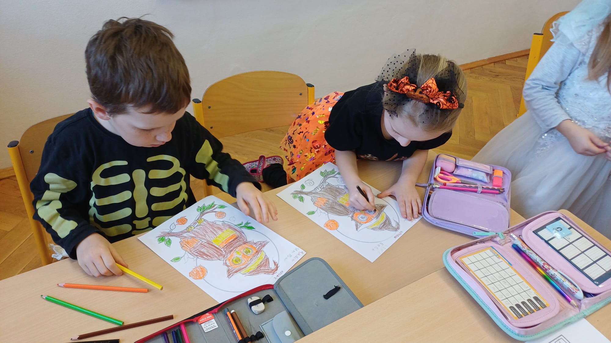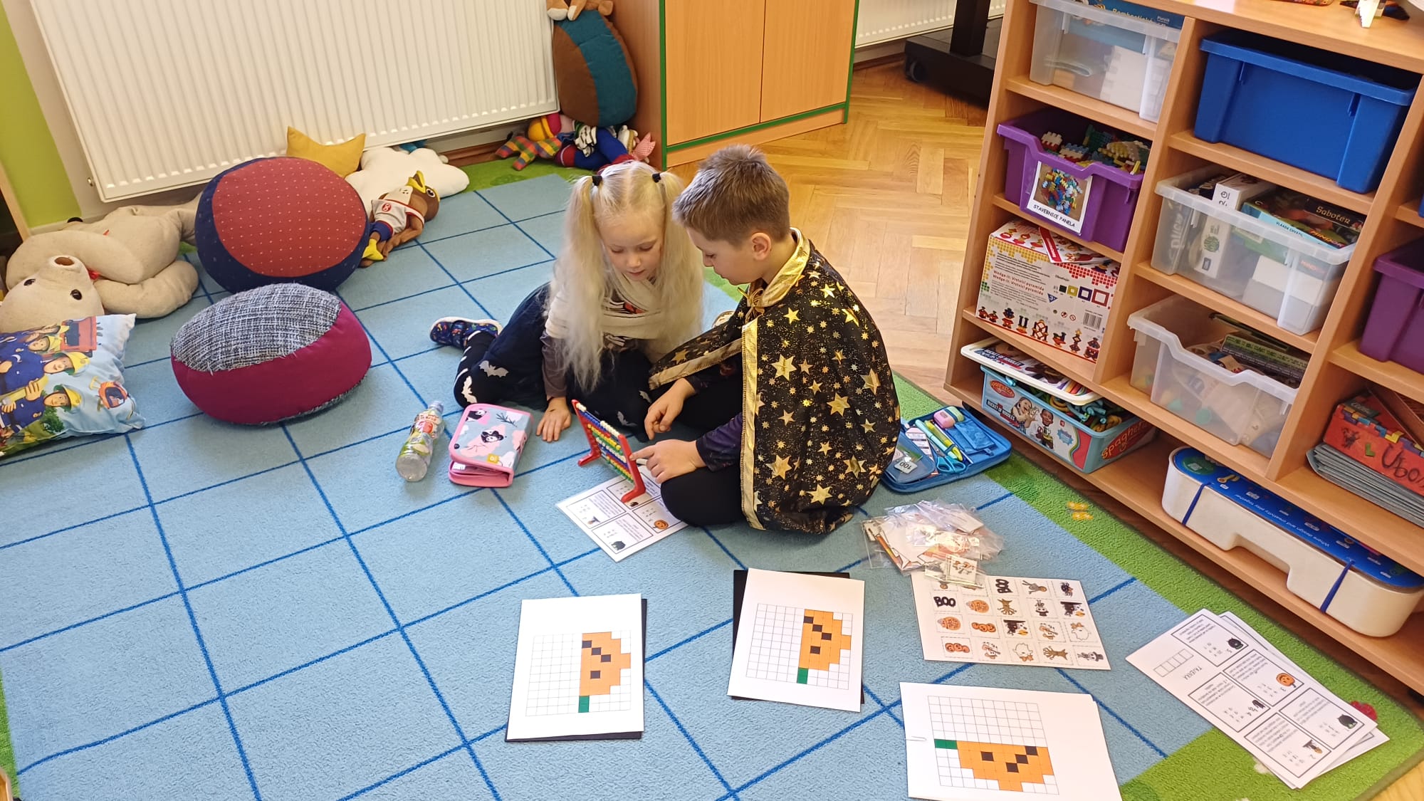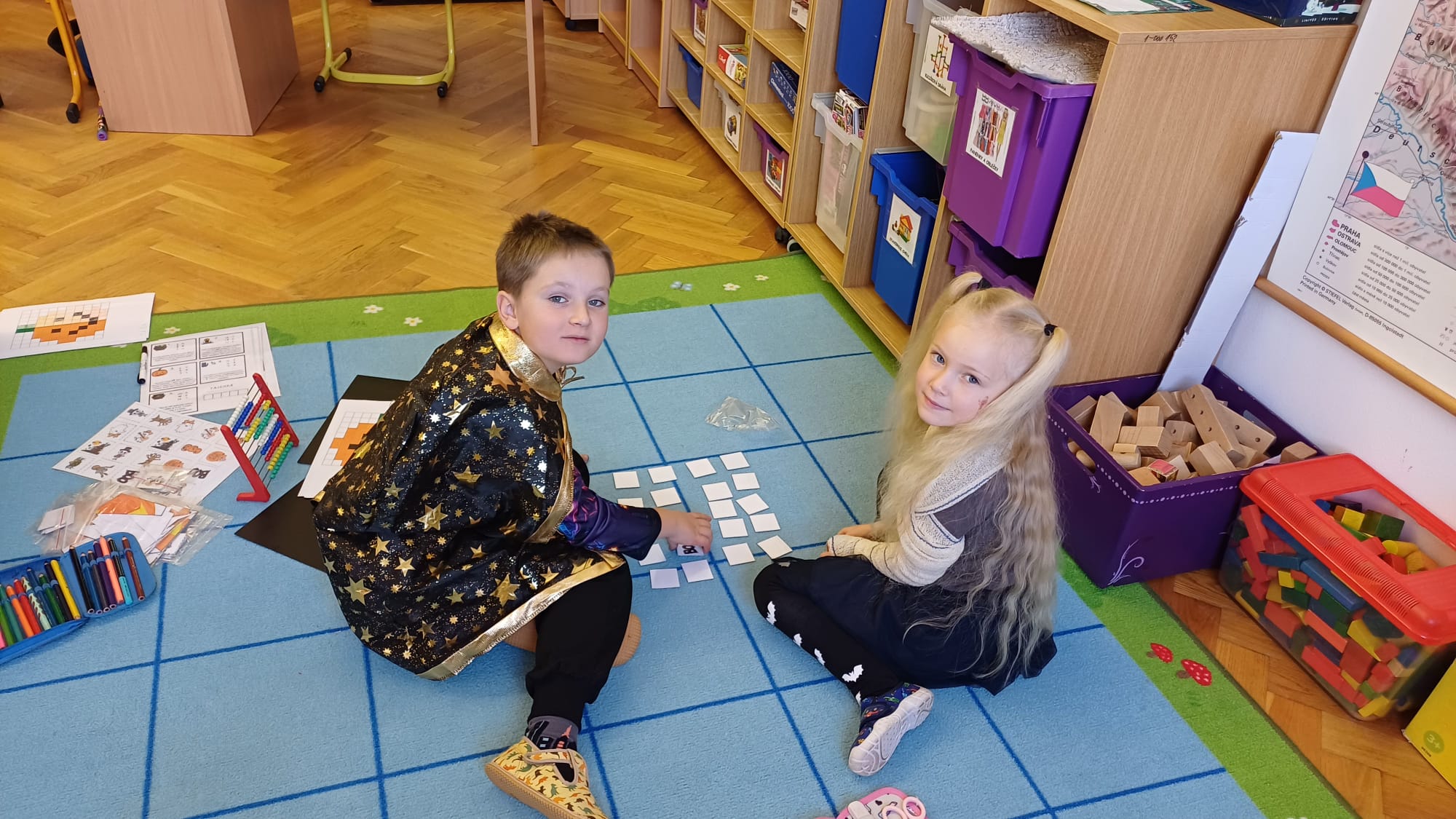 Již druhým školním rokem u nás probíhají oblíbená centra aktivit, kde si děti zábavnou formou procvičují učivo a učí se nové věci. Témata center jsou velmi různorodá a zajímavá. Během podzimu jsme například již cestovali po Evropě, seznamovali se se stromy všemi možnými způsoby a nevynechali ani dětmi oblíbené halloweenské téma. Tentokrát se ke spolužákům ze starší třídy přidaly i děti mladší. Všichni jsme si to příjemně užili.