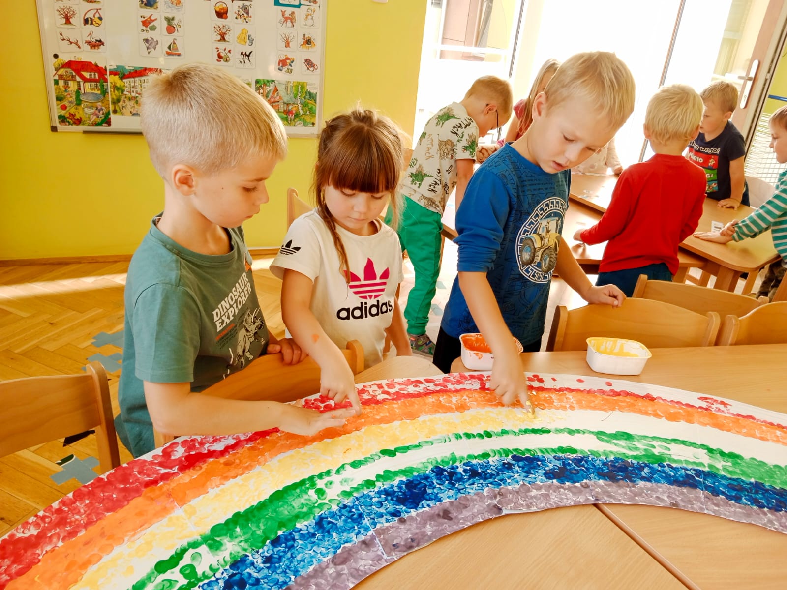 Nový školní rok jsme u Lišáků zahájili s úsměvem a v pohodové atmosféře. Naše zářijová témata byla zaměřena na to, co je dětem nejbližší. Téma pro první společné dny bylo „Já a moji kamarádi“, při kterém jsme si kromě poznávání nových kamarádů také stanovili třídní pravidla, aby nám bylo ve třídě dobře. Z otisků prstíků si děti společně vytvořily krásnou barevnou duhu, pod kterou si nakreslily sami sebe.