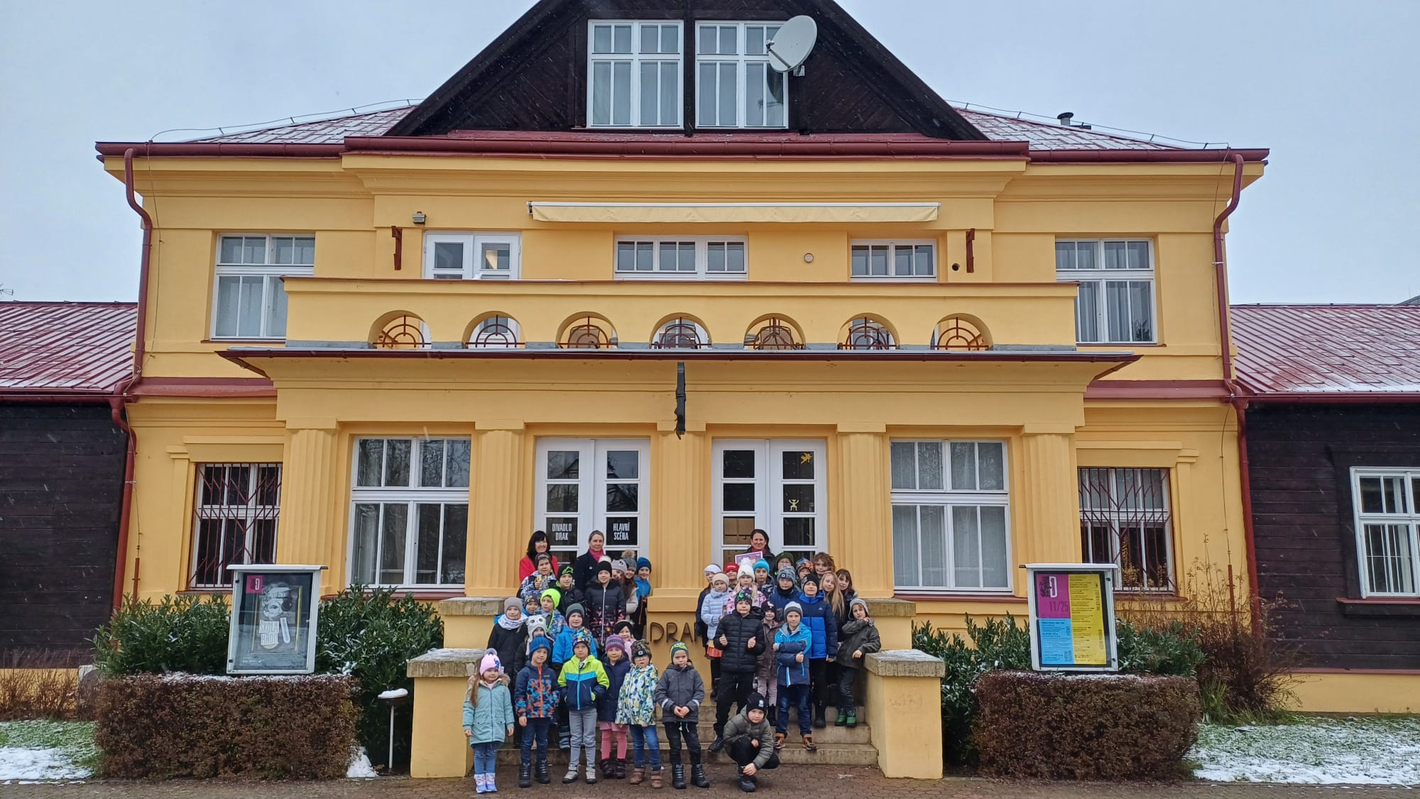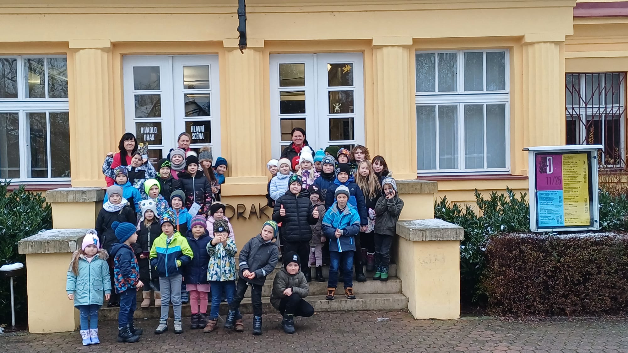 Ve středu 26. 11. navštívili školáci a předškoláci krásné představení divadla Drak v Hradci Králové. Maňásková pohádka o Šípkové Růžence byla od samého začátku velmi napínavá a zábavná. Příběh doplnily tóny houslí a zvuky elektronických bubnů, které navodily poutavou atmosféru. Pohádkou provázela zlá sudička a její vstup na zámek byl velmi legrační. Představení herci doplnili i videoprojekcí a nápaditými efekty. Děti se celé představení bavily, smály se a napjatě čekaly, co se v příběhu stane. Děti si divadlo užily a moc jim to ve společenském oblečení slušelo. Pokud bude další lákavá nabídka navštívit Divadlo Drak, rádi se sem vrátíme.