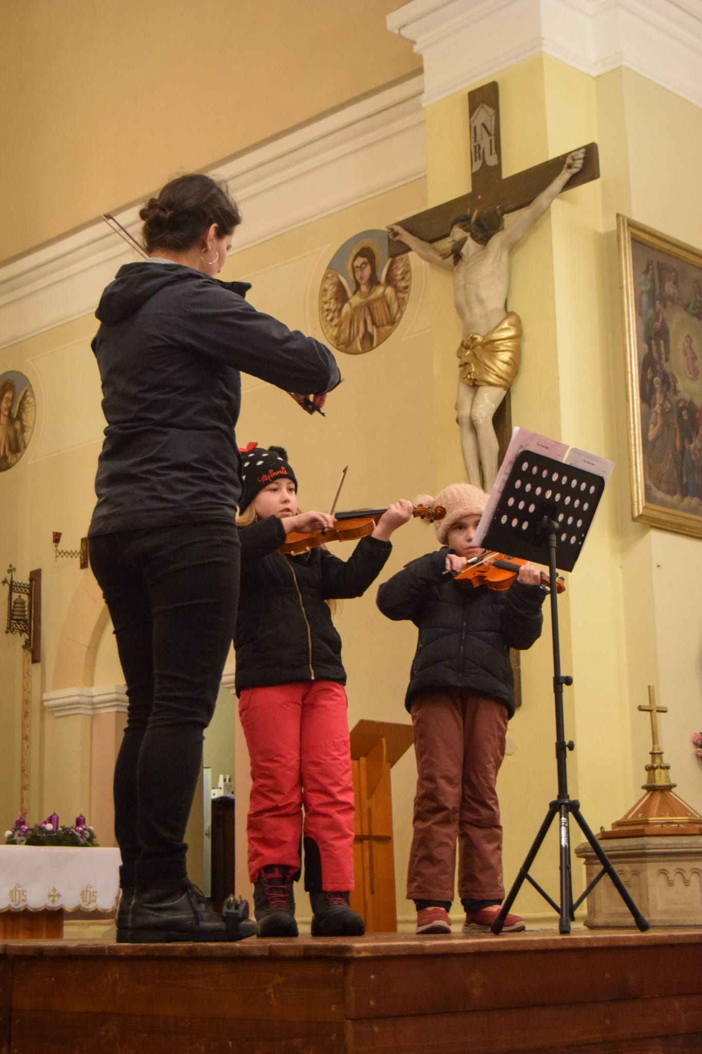 Dříve, než se rozezněly první tóny vánočních písní v krásném vidochovském kostele, zazpívala skupinka dětí vánoční koledy v obci Stupná. Podvečer pokračoval v kostele slavnostním koncertem, který vytvořil příjemnou předvánoční atmosféru. Vystoupily nejmenší děti ze školky, sboreček i všichni školáci. Program zpestřilo vystoupení houslistek Markéty Česákové a Julie Pilařové pod vedením Kateřiny Tošnerové a také jemná hra na harfu v podání prvňáčka Járy Tošnera – okamžik, který mnohé dojal. Paní učitelky i všichni účinkující zaslouží upřímnou pochvalu za pečlivou přípravu i odvahu vystoupit před početným publikem.