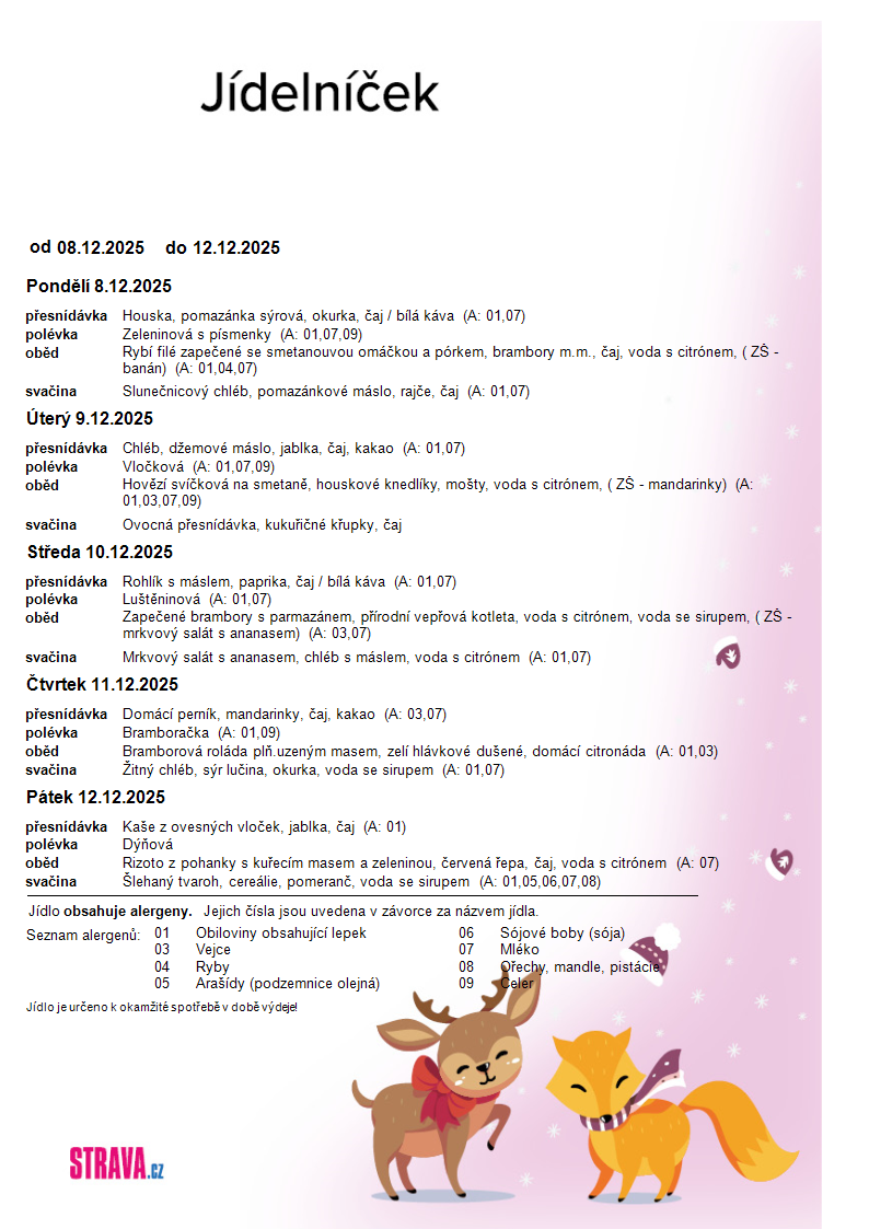 Jídelníček 8.12.2.12. 2025