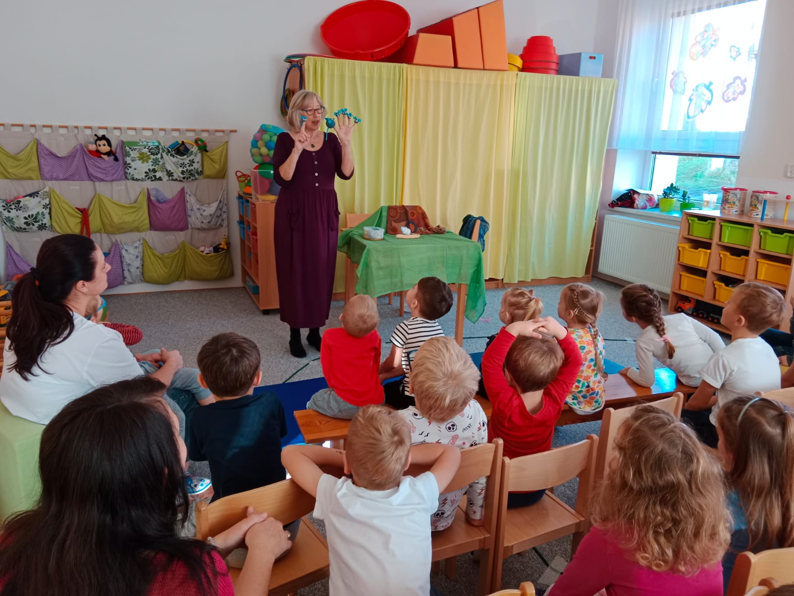 Listopadové téma „Moje rodina“ nám doplnily rodinné fotky podle kterých nám děti s hrdostí vyprávěly o svých blízkých. Na nástěnku pak přibyla vystřižená srdíčka, mezi která jsme fotky rodinek připnuli. Jeden den jsme věnovali soutěžím motivovaným tím, jak doma rodičům pomáháme Do školky přijela paní Mirka Grohová s moc pěknou loutkovou pohádkou o šnečkovi, který hledal domeček. Nakonec nám ještě zahrála pohádku s prstovými loutkami o myší rodince. Děti si pak loutky mohly prohlédnout a vyzkoušet. A to je bavilo.