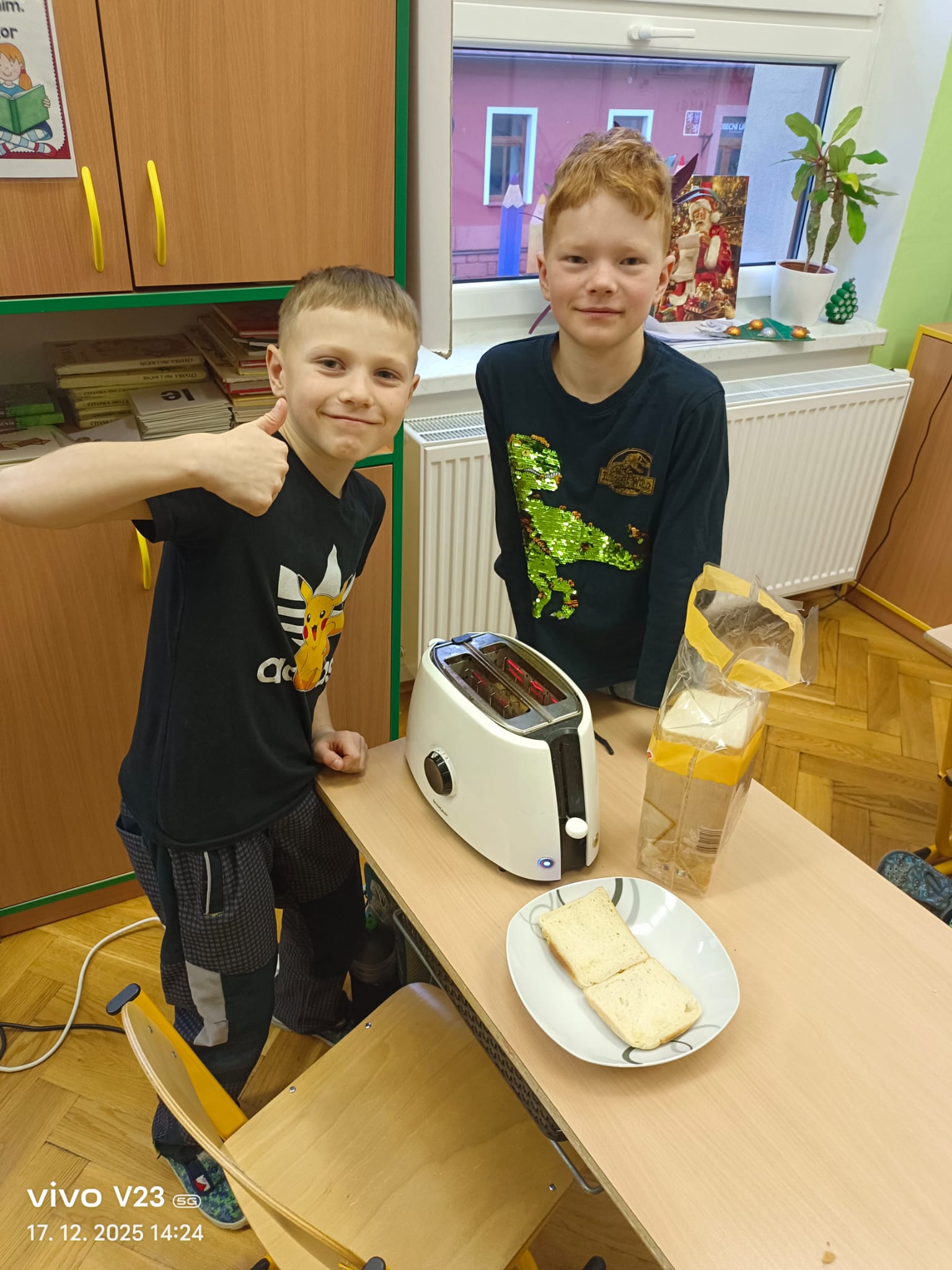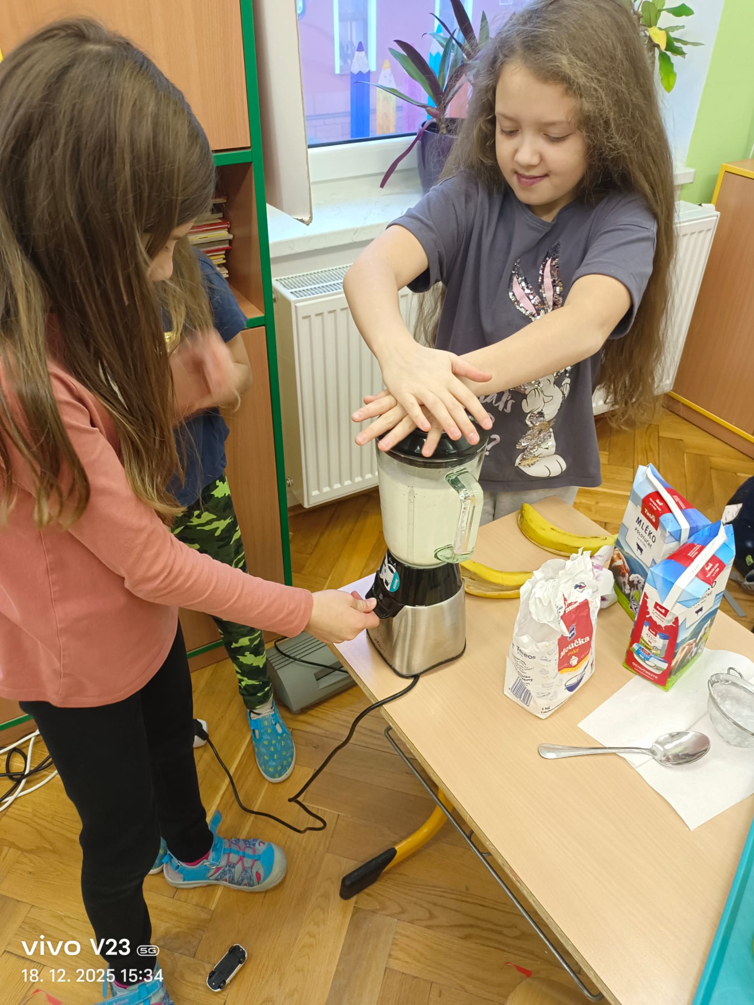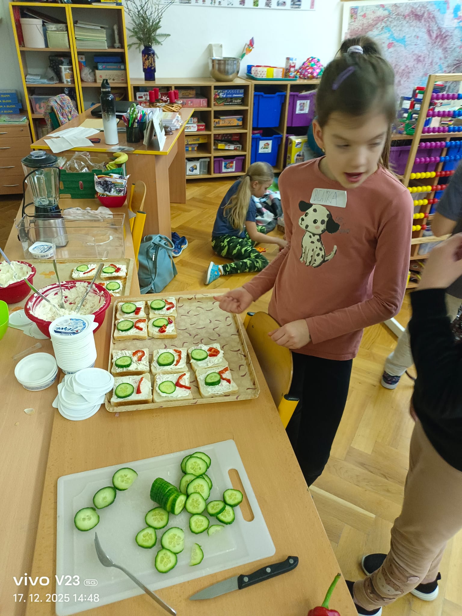 Dne 17.12. jsme si s dětmi ve školní družině zpříjemnili odpoledne výrobou pomazánek a koktejlů. V rámci projektu "Mléko do škol" děti dostaly žervé a mléko, a tak jsme toho využili a vyrobili si dvě pomazánky a dva koktejly. Pomazánky byly - česneková a hermelínová a koktjely - borůvkový a banánový. Dětem se vše moc povedlo a na svých výrobcích si velice pochutnaly.
