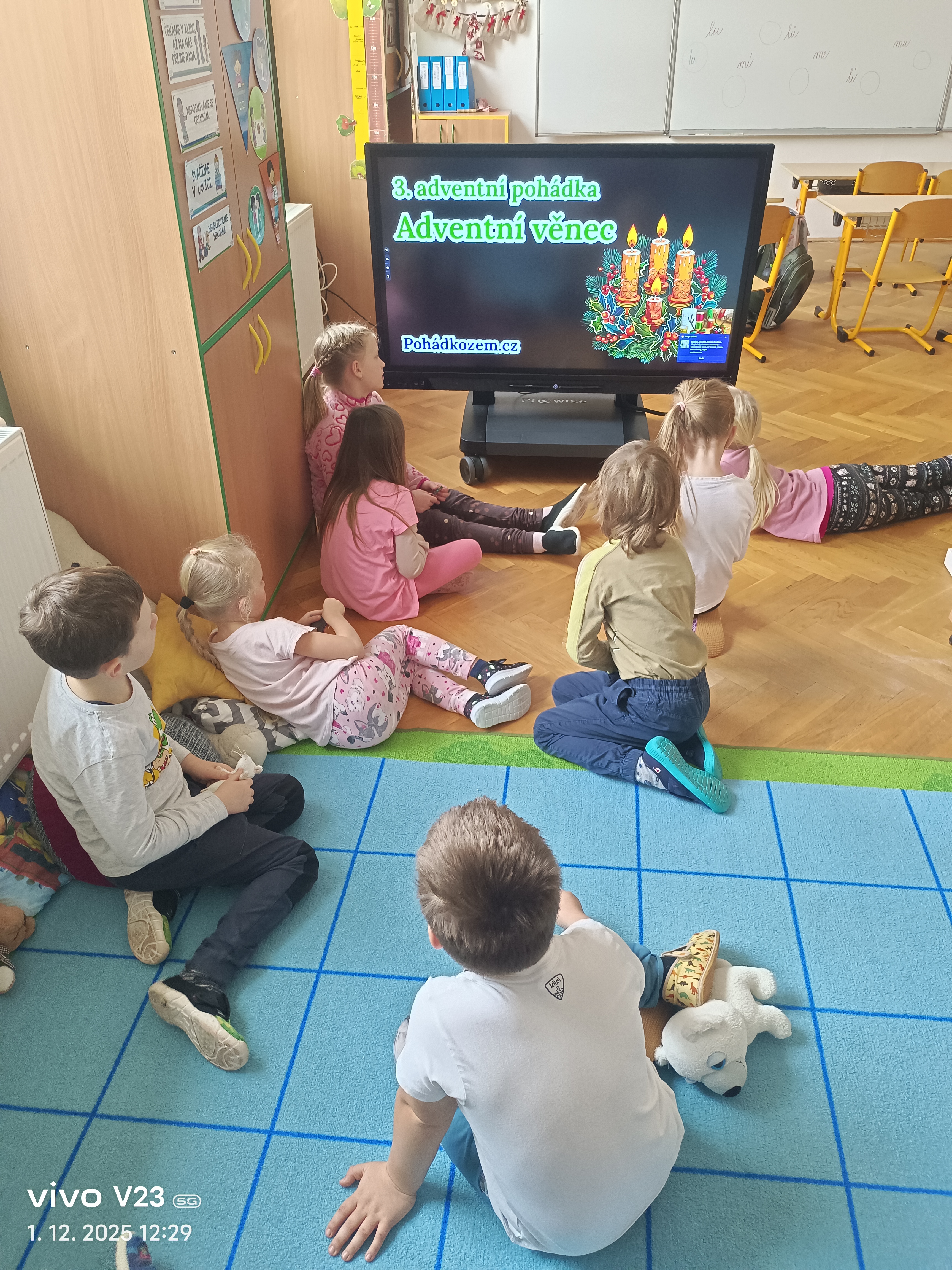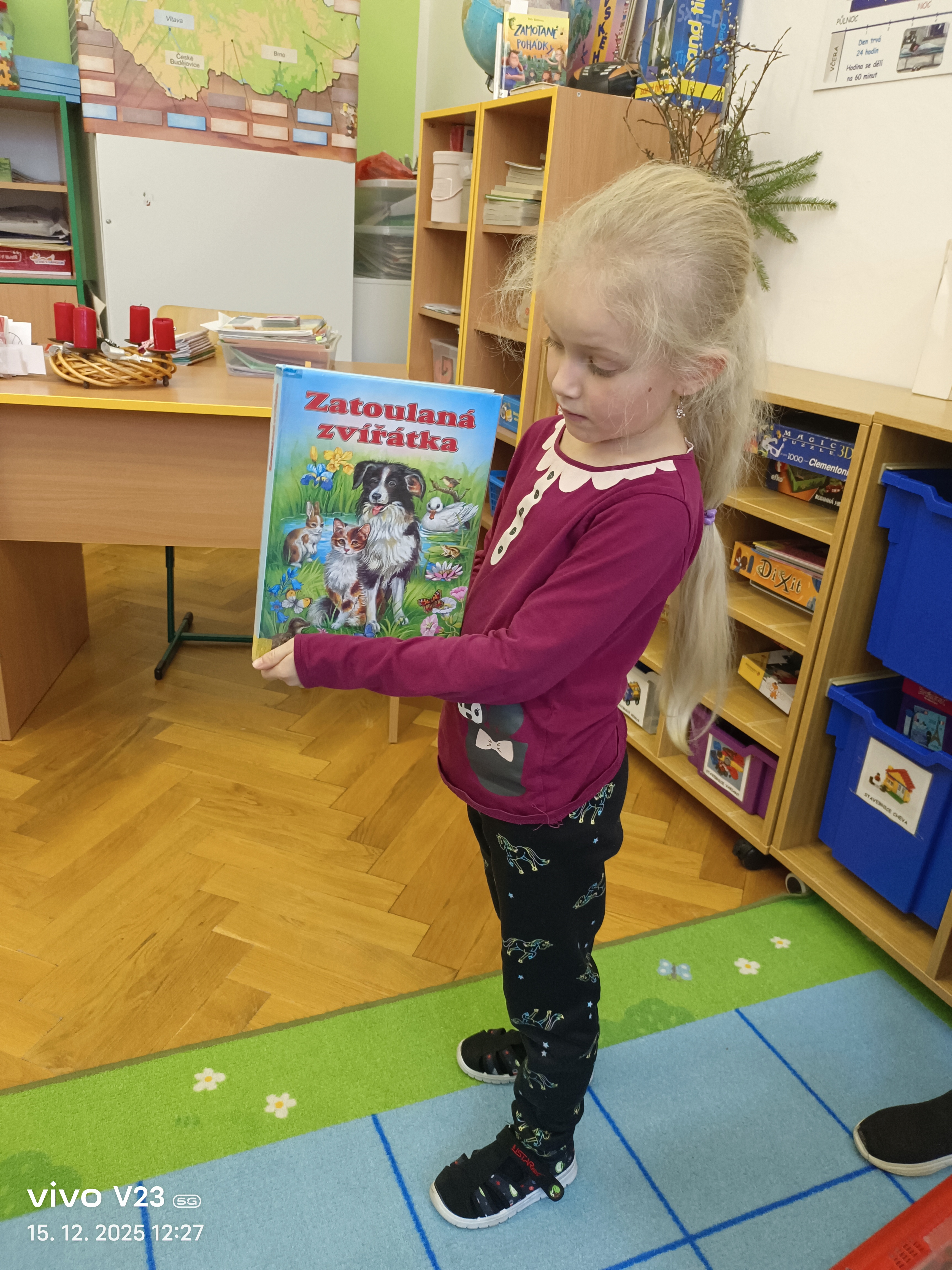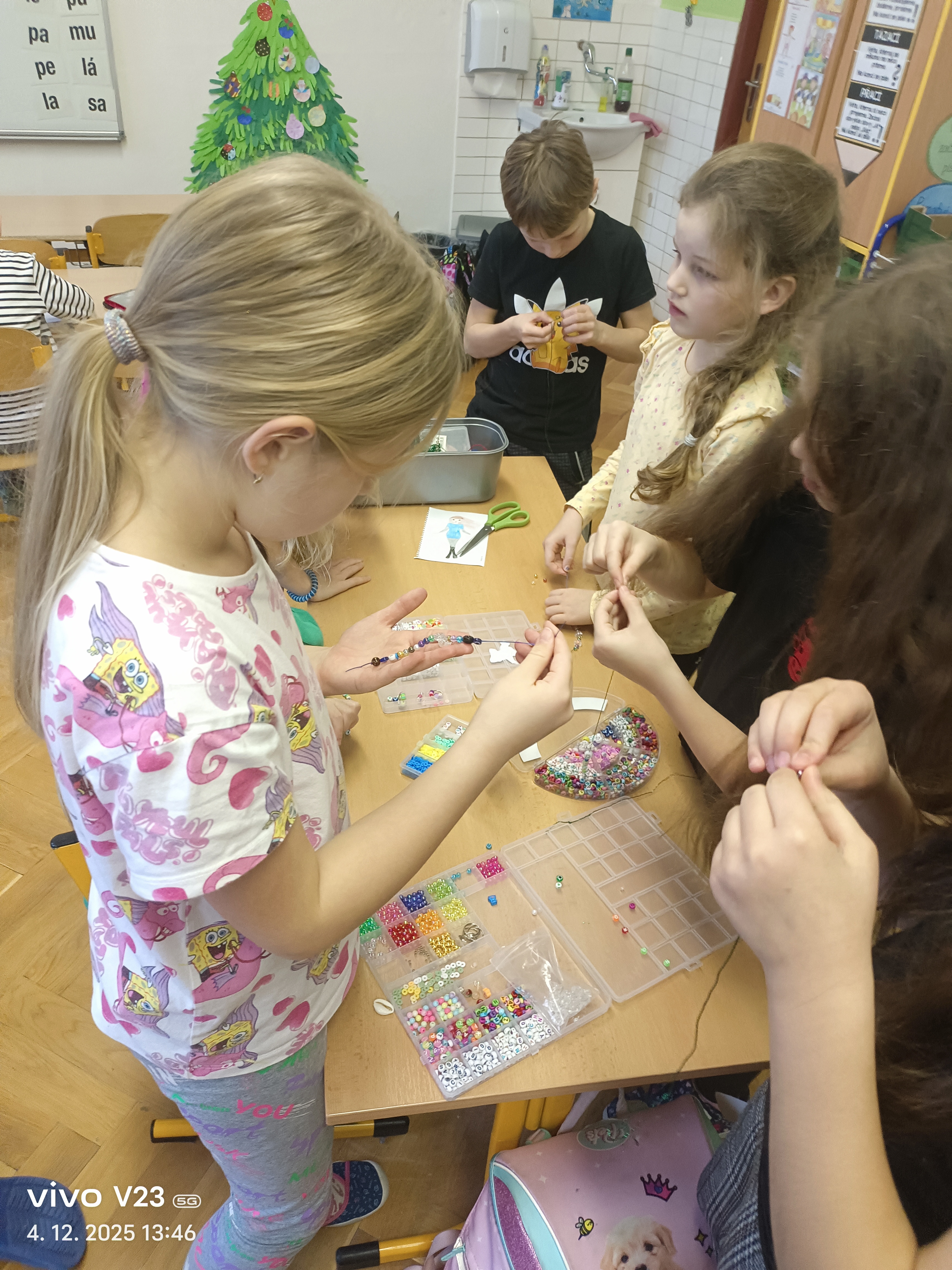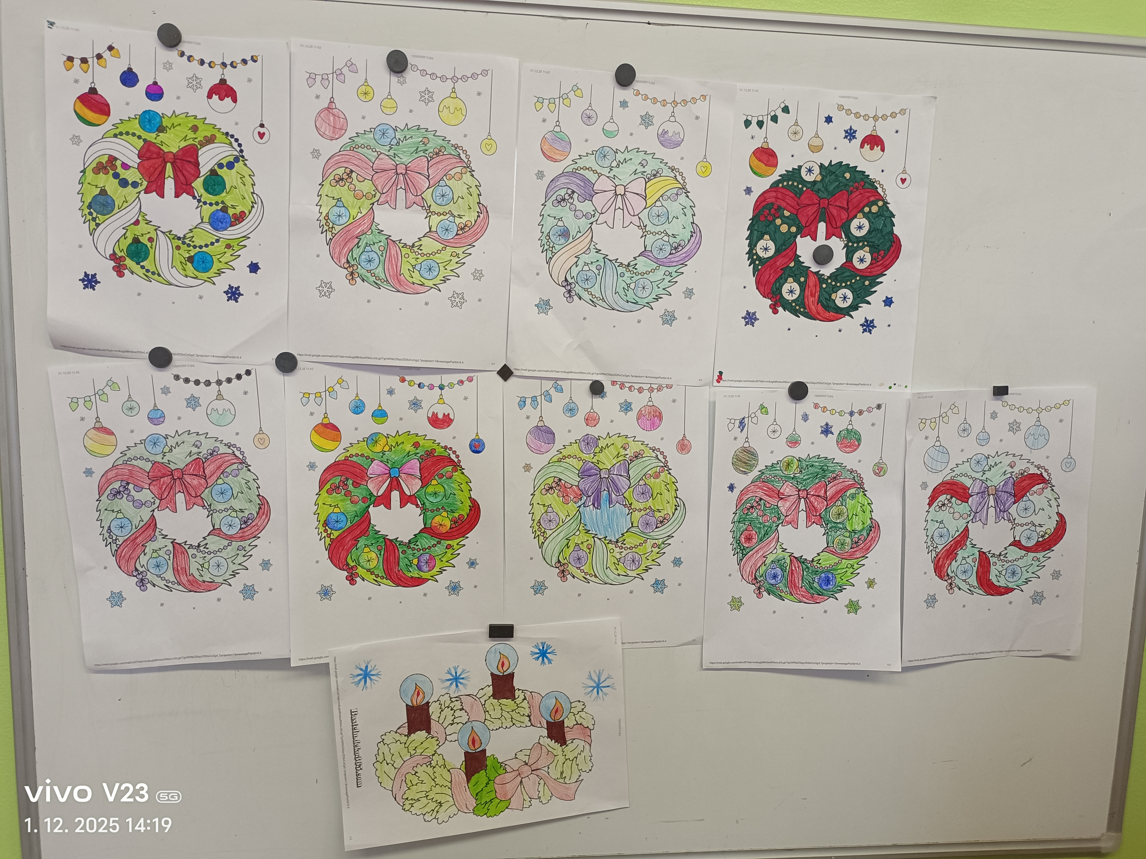 Začátkem měsíce jsme se věnovali povídání o adventu a více si rozebrali celý adventní čas. Na interaktivní tabuli jsme se podívali na pohádku o adventním věnci a více si tuto tradici vysvětlili. Poté děti soutěžily o nejkrásněji vymalovaný adventní věnec. Další výtvarnou aktivitou bylo tvoření obrázků se zimní a vánoční tématikou za pomoci inkoustu a zmizíku . To děti moc bavilo. V rámci relaxačních činností si děti oblíbily kreslení podle předlohy na interaktivní tabuli a také tvoření z korálků. Další oblíbenou hrou byla hra na fitcentrum a masážní salón. Děti byly moc šikovné a nápadité a do své hry zapojily i paní učitelky . Jako každý měsíc i tento vznikaly zajímavé výrobky z našich stavebnic . V rámci pracovních činností si děti v době příchodu Mikuláše, čerta a anděla vyrobily krásné andílky . Ani v prosinci nechybělo představování knížek, které si děti vybraly a vypůjčily v obecní knihovně. Proběhl také den zdravých pomazánek a koktejlů, který byl již zmíněn ve zvláštním příspěvku . Jako každý rok nemohlo ani letos chybět tvoření vánočních přáníček. Tentokrát to byla přáníčka s fotkou dětí pro rodiče nebo prarodiče, která mohla být použita i jako ozdoba na vánoční stromeček .