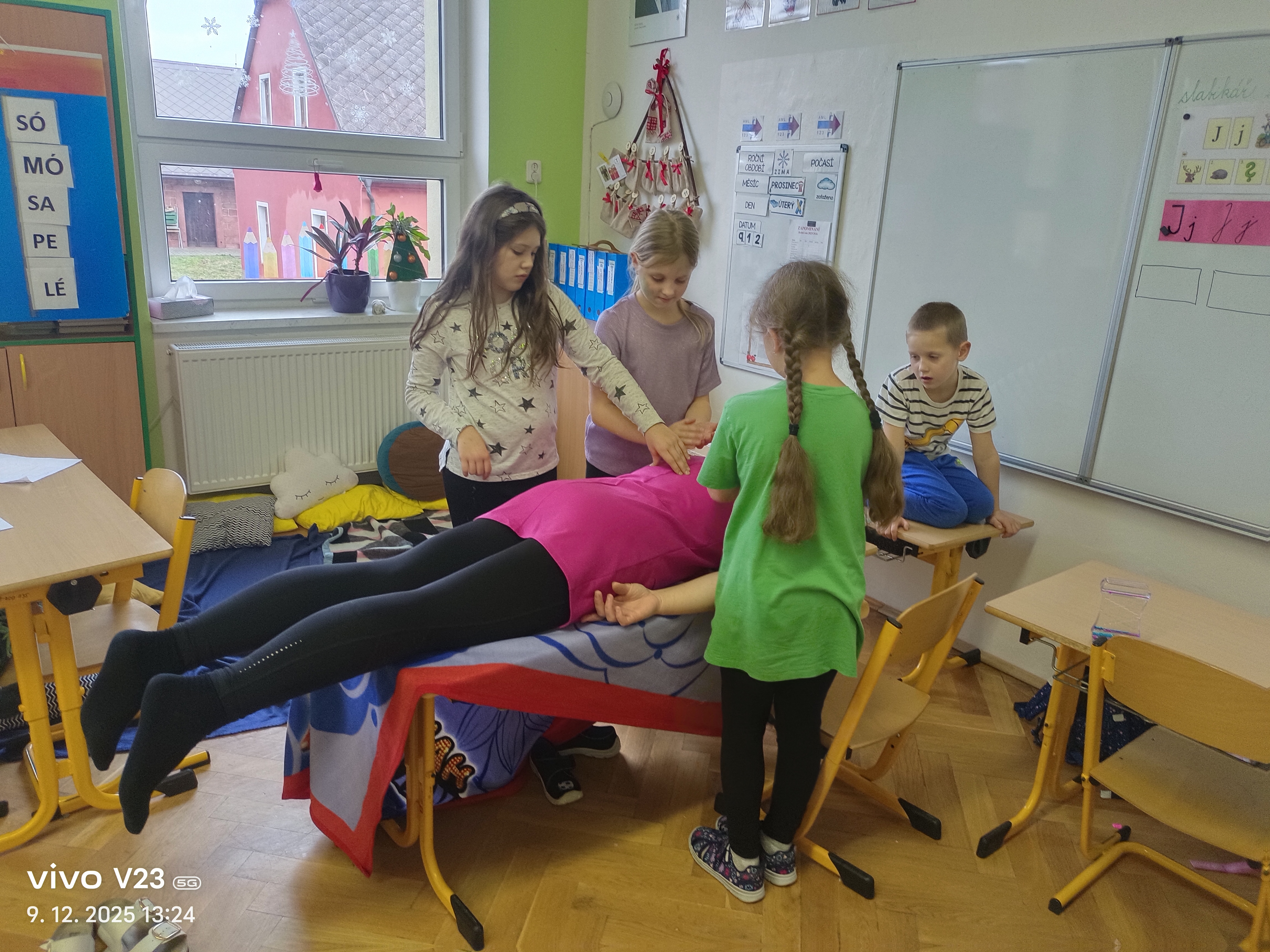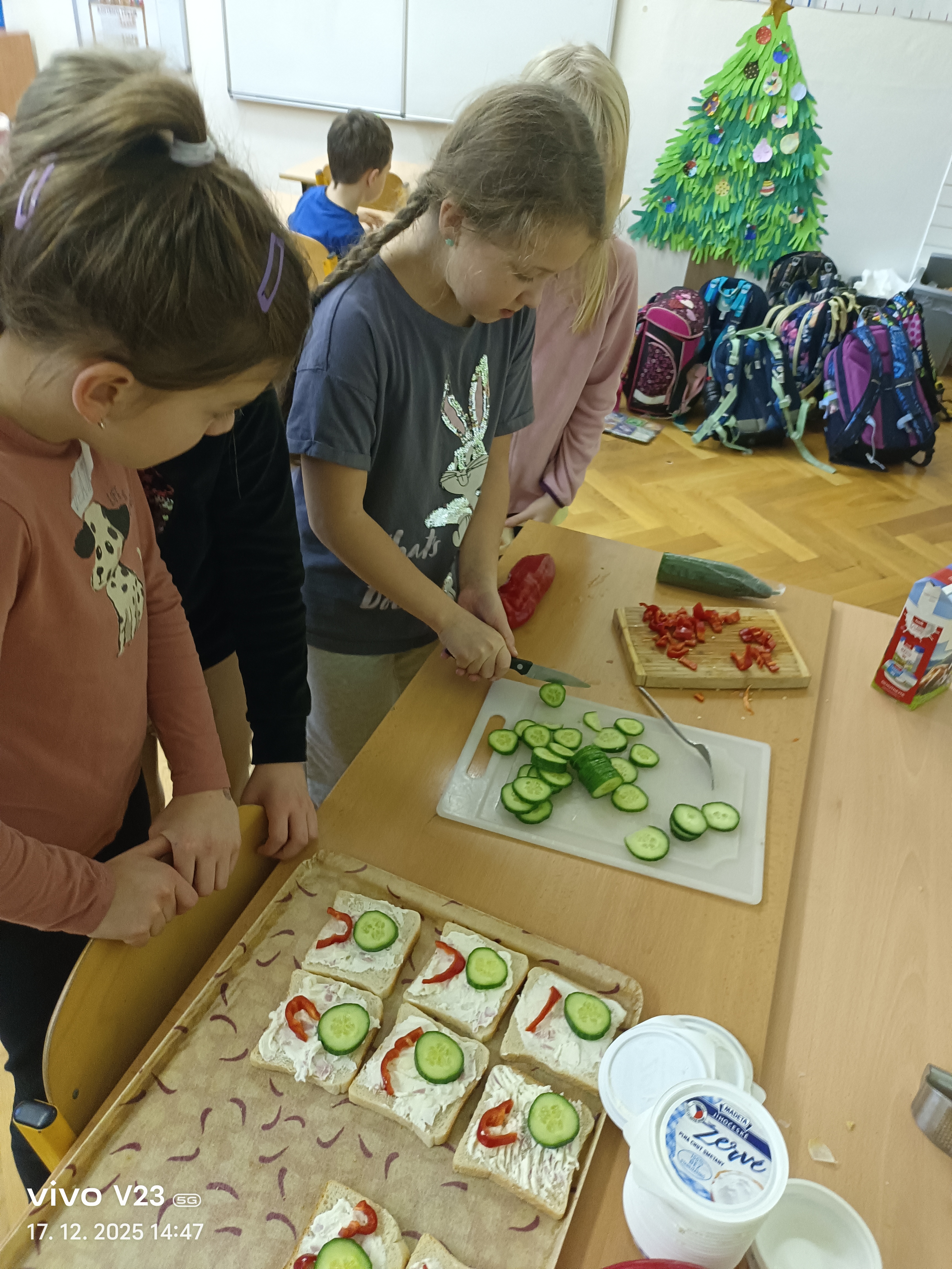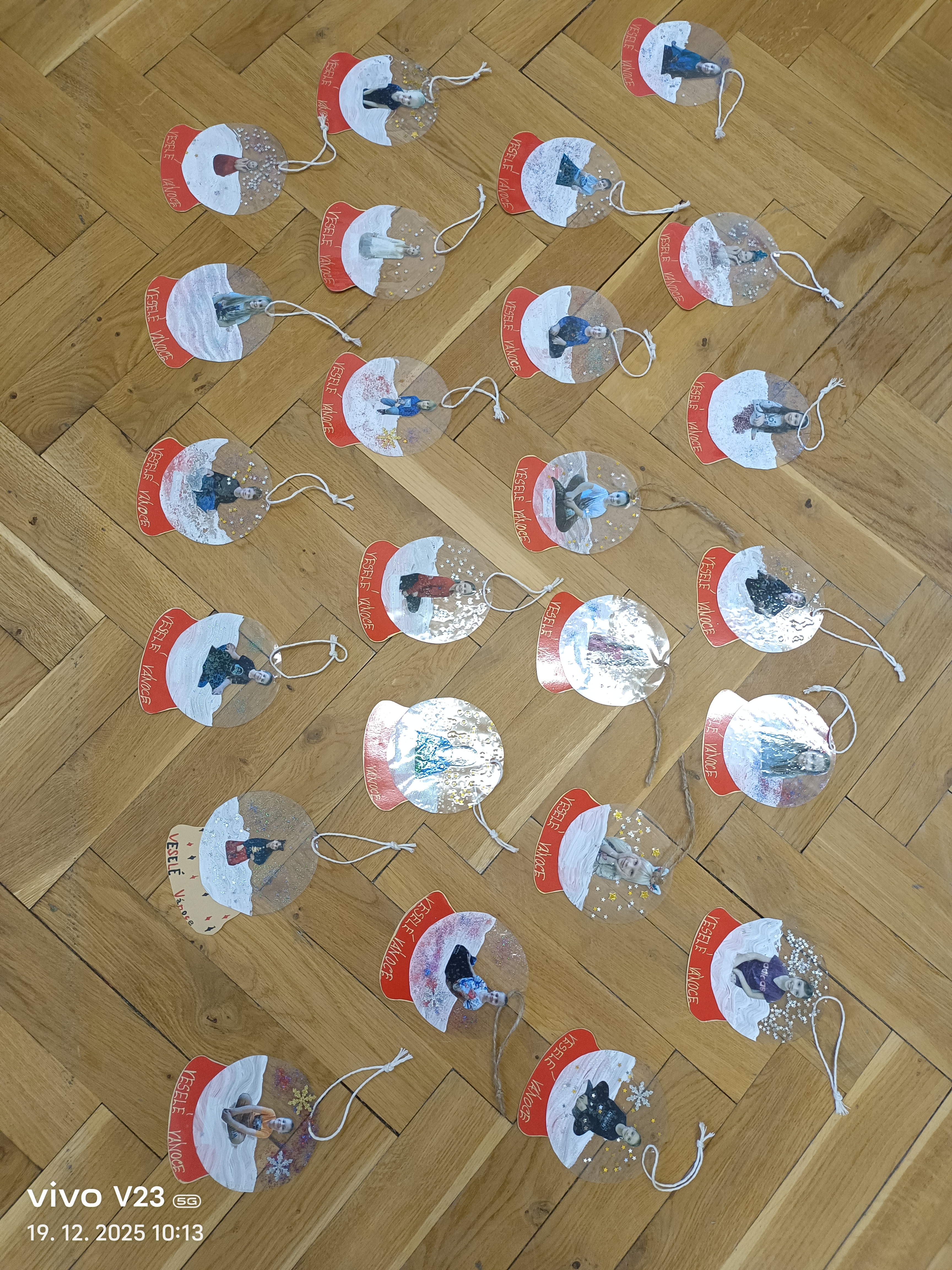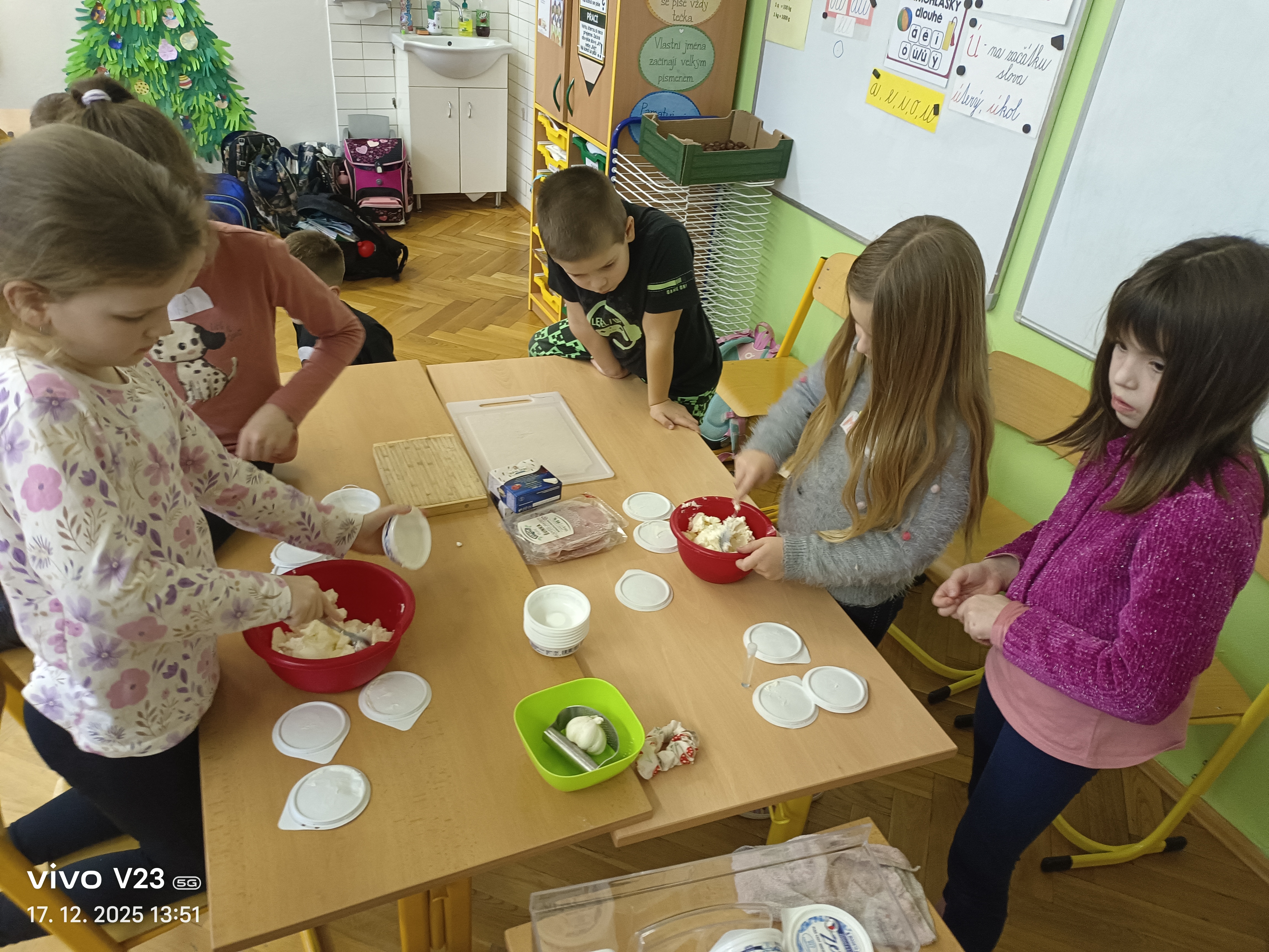 Začátkem měsíce jsme se věnovali povídání o adventu a více si rozebrali celý adventní čas. Na interaktivní tabuli jsme se podívali na pohádku o adventním věnci a více si tuto tradici vysvětlili. Poté děti soutěžily o nejkrásněji vymalovaný adventní věnec. Další výtvarnou aktivitou bylo tvoření obrázků se zimní a vánoční tématikou za pomoci inkoustu a zmizíku . To děti moc bavilo. V rámci relaxačních činností si děti oblíbily kreslení podle předlohy na interaktivní tabuli a také tvoření z korálků. Další oblíbenou hrou byla hra na fitcentrum a masážní salón. Děti byly moc šikovné a nápadité a do své hry zapojily i paní učitelky . Jako každý měsíc i tento vznikaly zajímavé výrobky z našich stavebnic . V rámci pracovních činností si děti v době příchodu Mikuláše, čerta a anděla vyrobily krásné andílky . Ani v prosinci nechybělo představování knížek, které si děti vybraly a vypůjčily v obecní knihovně. Proběhl také den zdravých pomazánek a koktejlů, který byl již zmíněn ve zvláštním příspěvku . Jako každý rok nemohlo ani letos chybět tvoření vánočních přáníček. Tentokrát to byla přáníčka s fotkou dětí pro rodiče nebo prarodiče, která mohla být použita i jako ozdoba na vánoční stromeček .