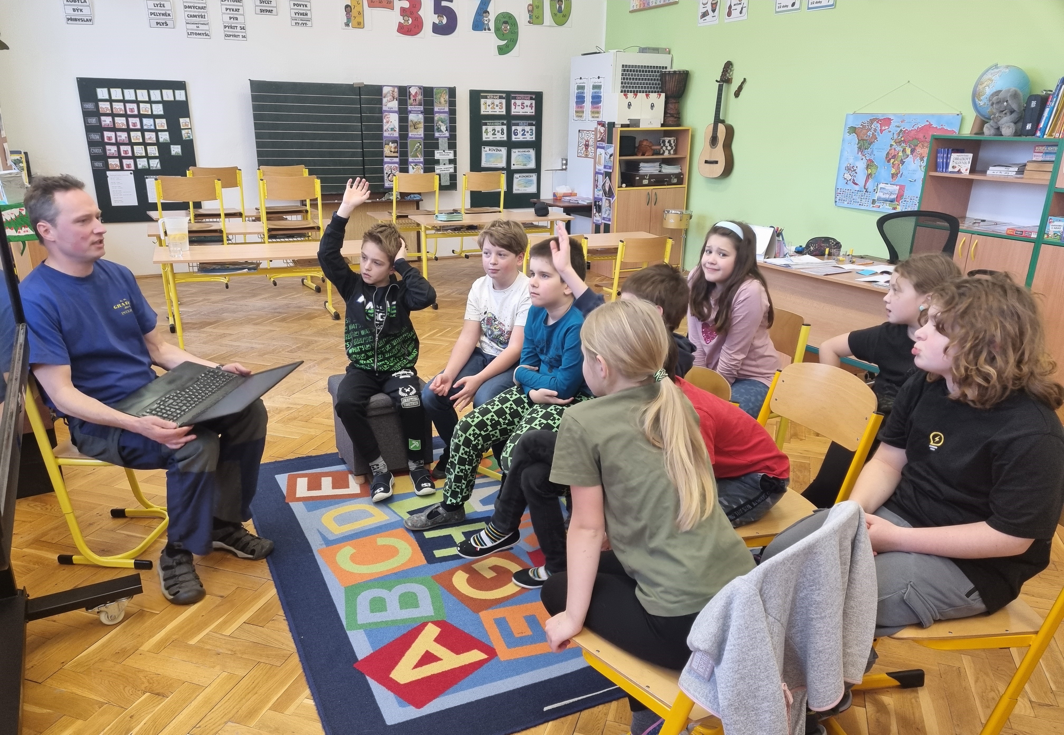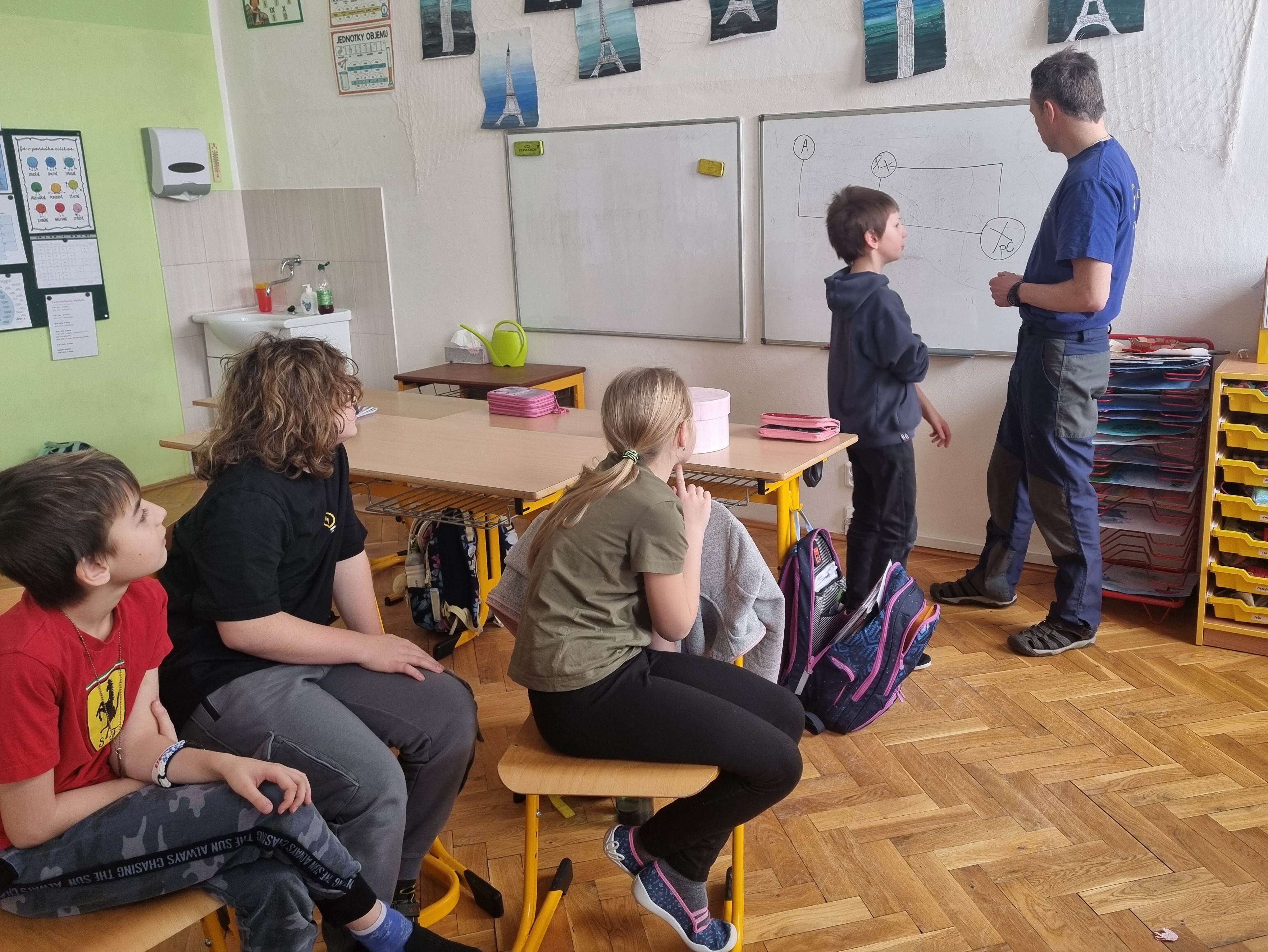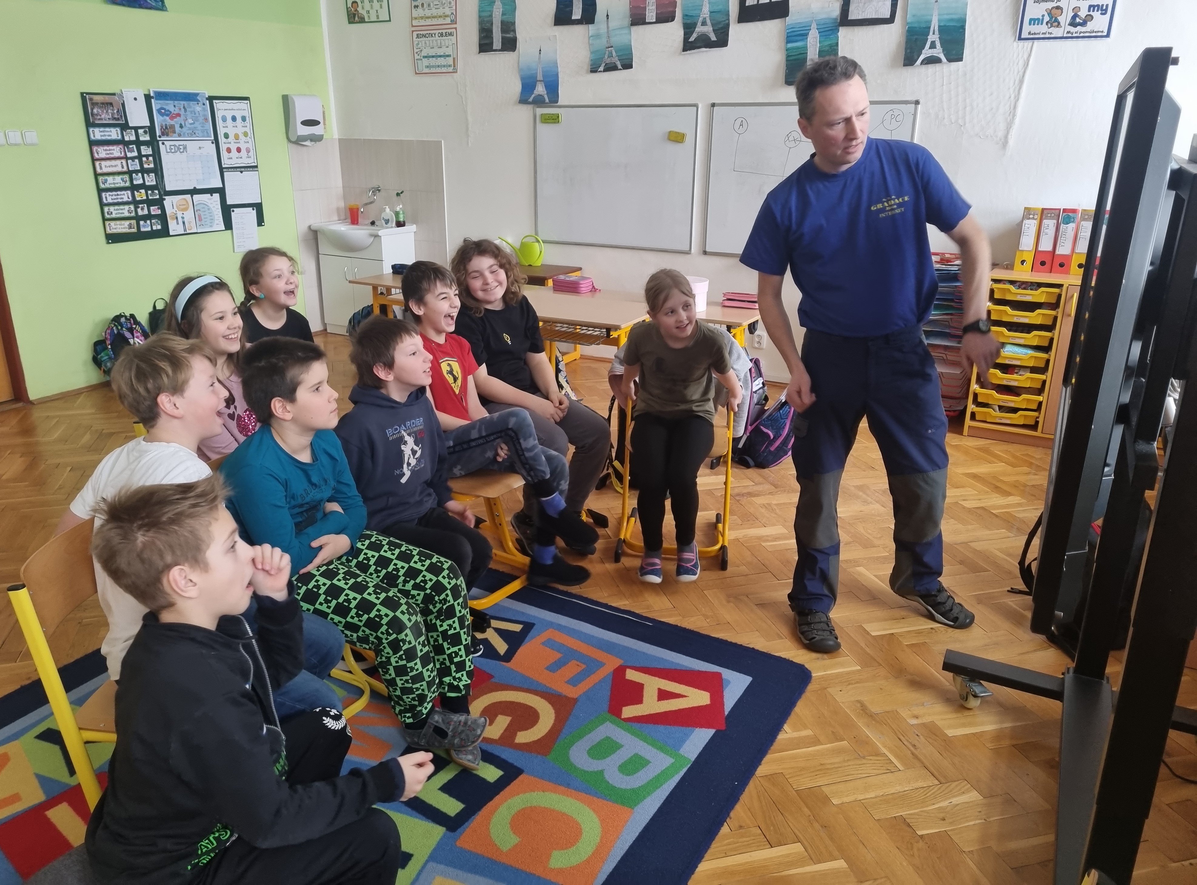 Beseda začala širším úvodem o šikaně obecně a postupně se přesunula ke konkrétním situacím, se kterými se děti mohou setkat v online prostředí. Pan Hanuš využíval řadu příkladů z běžného života a často popisované situace přibližoval na modelových příkladech z prostředí dětského kolektivu. Výklad byl místy humorný, což děti přirozeně zaujalo, zároveň však jasně upozorňoval na možná rizika a důsledky nevhodného chování na internetu.