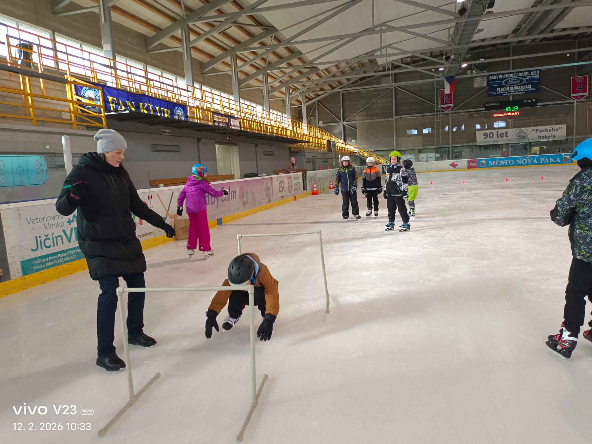 Na závěr kurzu si všichni mohli zasoutěžit a malí hokejisté si mohli zahrát hokej. Velké poděkování patří zřizovateli naší školy za zajištění autobusu, díky kterému byla doprava do Nové Paky i zpět pohodlná a rychlá.
