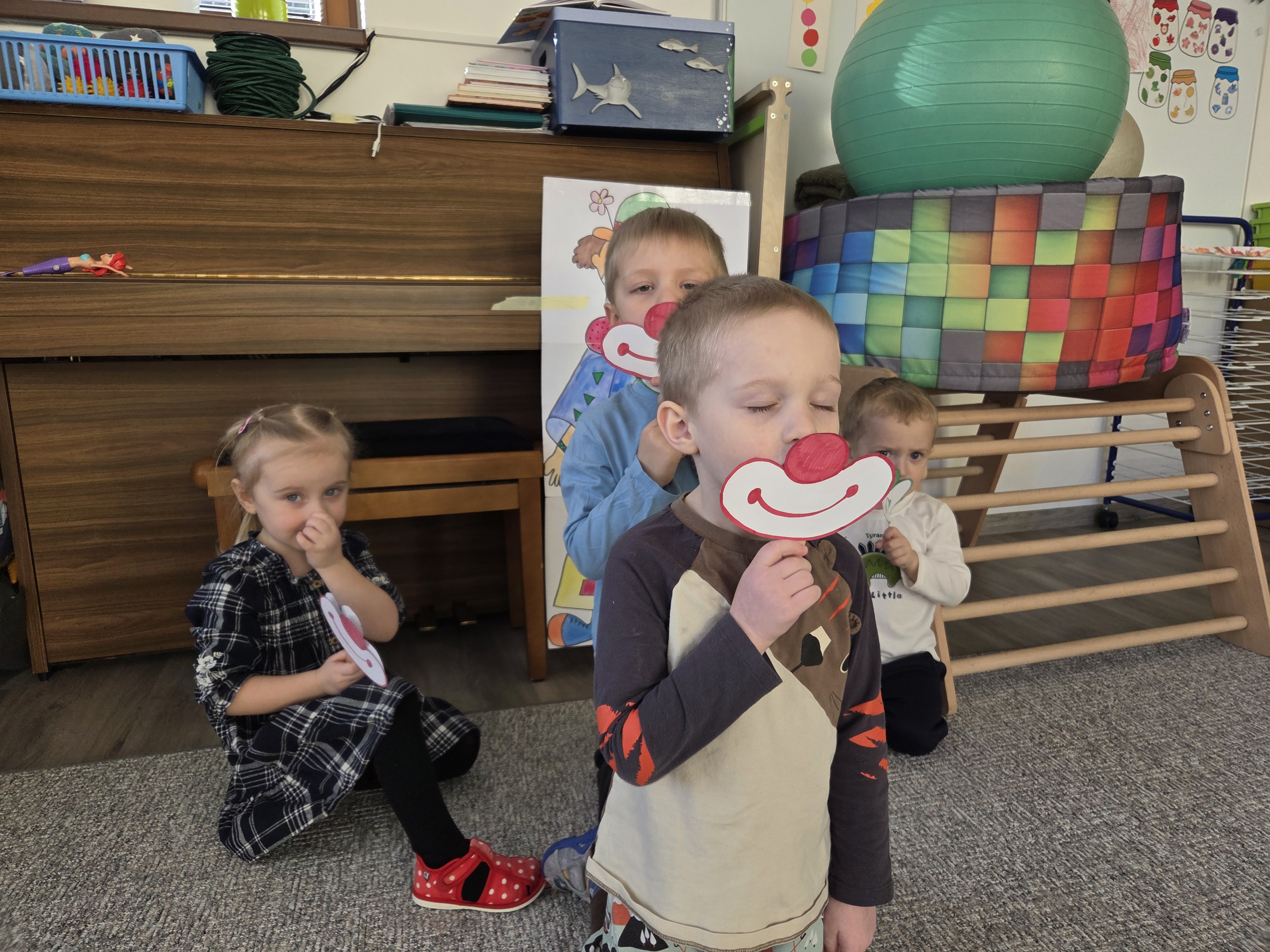 Poslední dva týdny měsíce února se nesly v duchu veselí, protože tématem byl Karneval a Cirkus. Děti si hrály s barvami na nejrůznější způsoby, počítaly šaškovské čepice, hledaly dva stejné šašky, seznamovaly se s pojmy cirkus, šapitó, klaun, kočovný život. Vyvrcholením tohoto tématu pak byl školkový karneval, na který se děti velmi těšily. Od rána se scházely v maskách a převlecích, užily si spoustu soutěží, srandy a tanečních kreací v rámci dětské diskotéky.