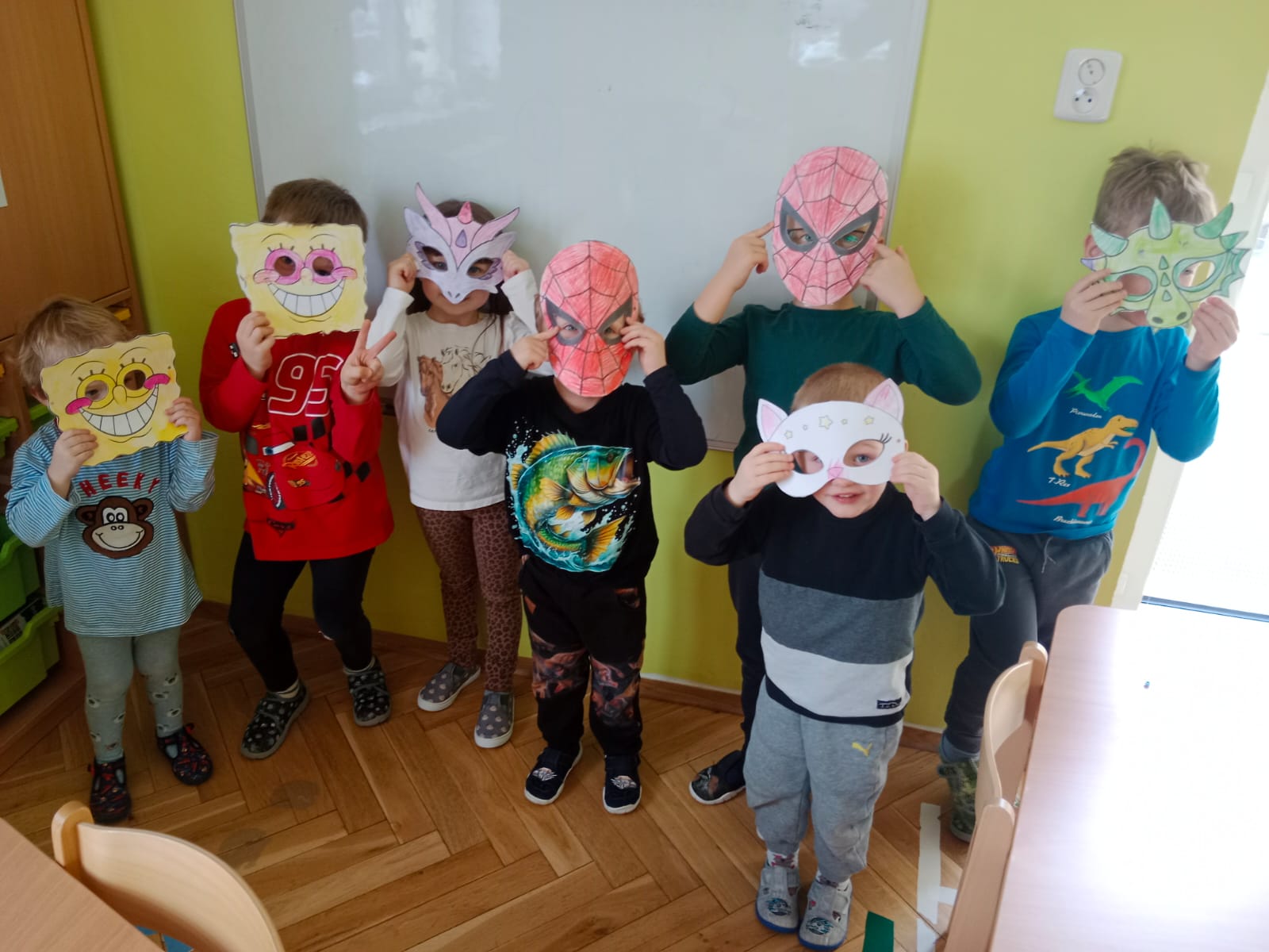 Další dva týdny byly plné zábavy, pohybu a tance. V téma „Karneval“ jsme vyráběli karnevalové masky, povídali si, jak se slaví ve světě a jaké masky lidé oblékají a naučili se novou písničku Karneval.