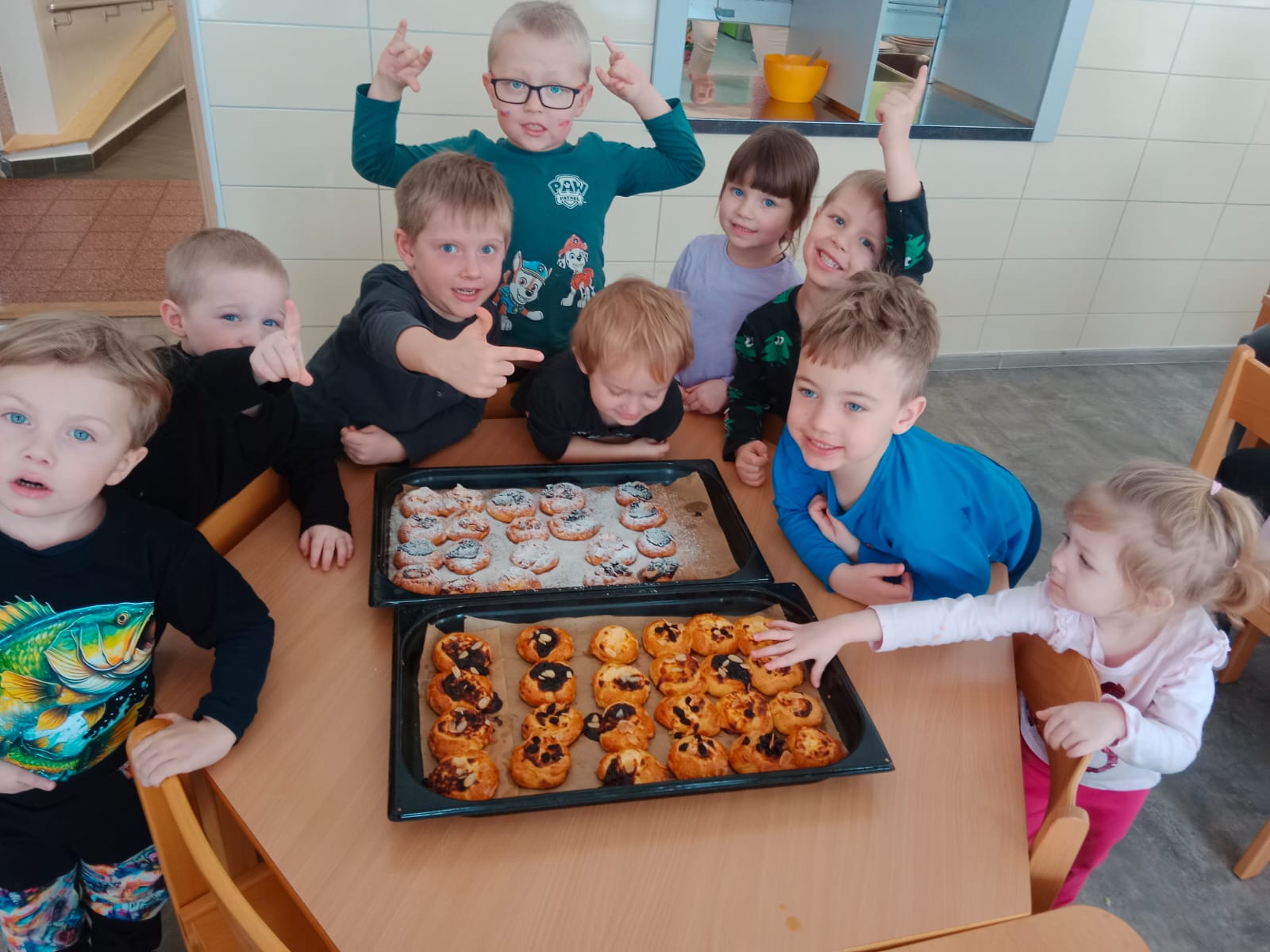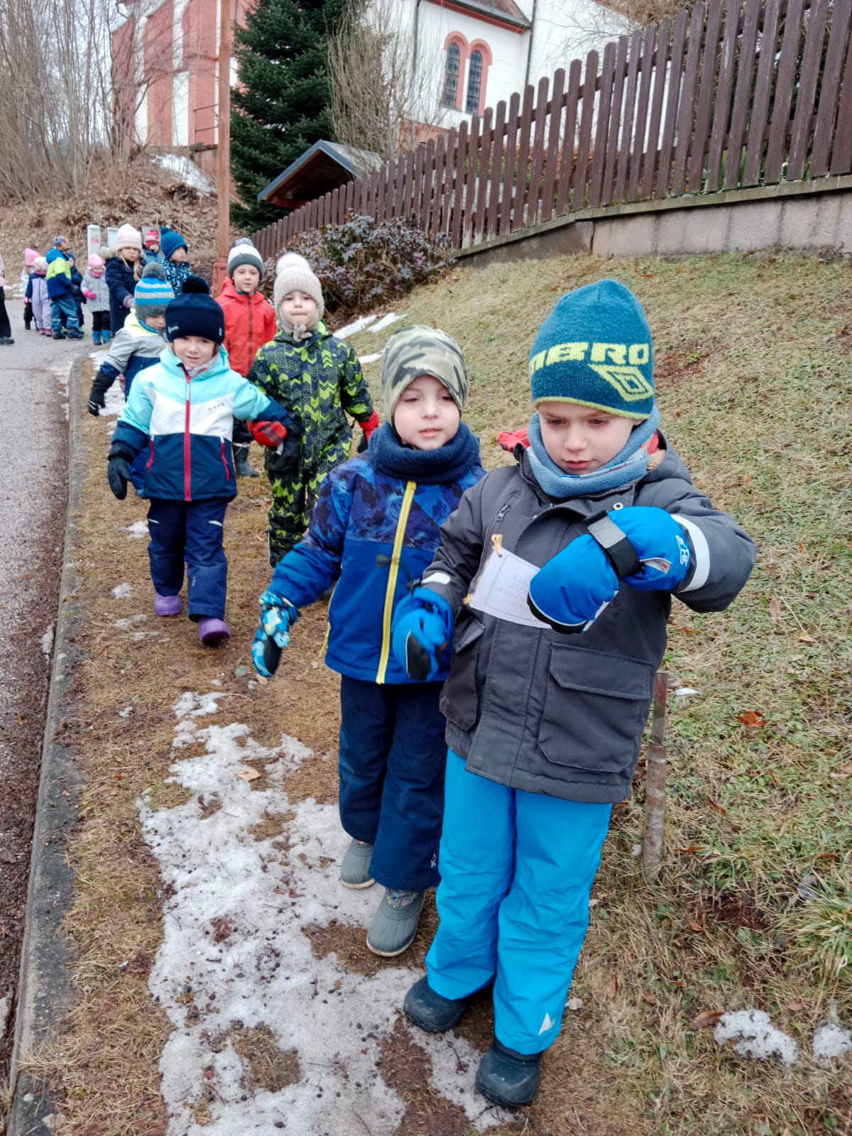 V úterý 17.2. jsme si prožili společně s dětmi z MŠ I projektový den „Masopust“. Povídali jsme si o této tradici, jak se slavila dříve a jak dnes. Upekli jsme si povidlové a tvarohové masopustní koláčky, které si pak děti ochutnaly a ostatní si odnesly domů pro rodiče nebo sourozence. Koláčky si děti taky vyrobily na naši sportovní soutěž v hodu do pece. Kruh žlutého a modrého papíru jsme rozstříhali na čtvrtiny a děti z nich sestavovali do koláčků vlastní poměr náplní tvarohové a povidlové. S obrázky masopustního průvodu jsme si povídali o každé postavě, co symbolizovala. Nakonec si ve dvou družstvech zasoutěžily děti v plnění punčochové jitrnice malými míčky. Každý se chytil jitrnice a společně aniž by se ji pustili museli přejít, prolézt, podlézt překážkovou dráhu.