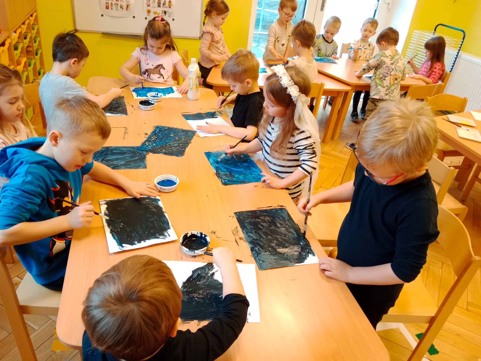 První týden v měsíci únoru měli školáci jarní prázdniny, a tak jsme se ve školce spojili s mladšími dětmi od Myšáků. Nový měsíc jsme odstartovali letem do vesmíru, povídali jsme si o planetách ve vesmíru, prohlíželi si velké encyklopedie a obrázkové knížky. Vymysleli jsme si „Koníčkovou planetu“. Na ní pak děti stavěly stáje a další vymoženosti, které by koníkům zpříjemnily život na planetě. Nakonec si pomocí lesků, třpytek a barev vytvořily hvězdnou oblohu a postavily vesmírný raketoplán, se kterým se dá do vesmíru vyrazit.