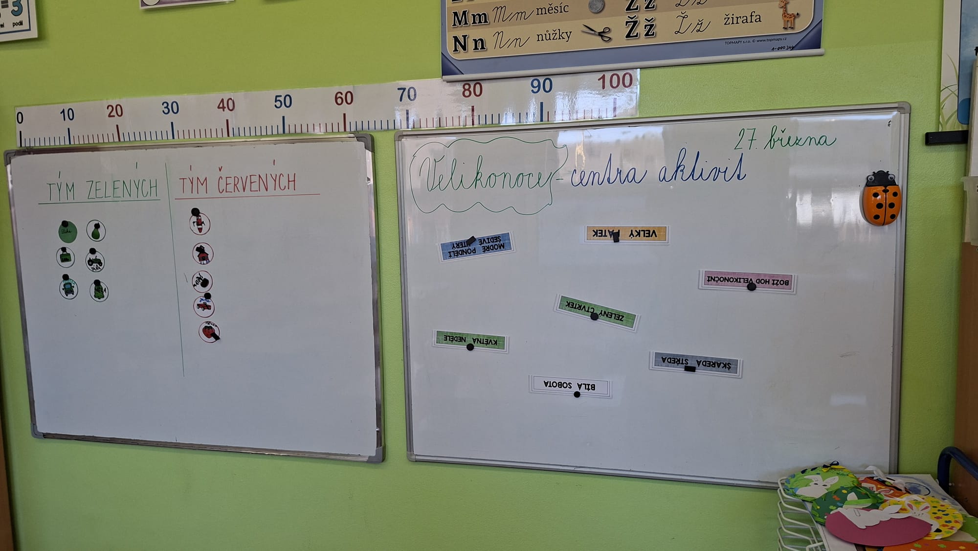 Žáci 1. a 2. ročníku i nadále pokračují v Centrech aktivit, která proběhla 27. 3. Tématem byly Velikonoce, jarní období a s nimi spojené tradice. Děti pracovaly ve skupinkách na různorodých úkolech z matematiky, českého jazyka, prvouky i pracovních činností. V rámci tvoření si osely květináče ovsem a ozdobily je velikonočními vajíčky. Dopoledne rychle uteklo a my se už nyní těšíme na další zajímavá témata.