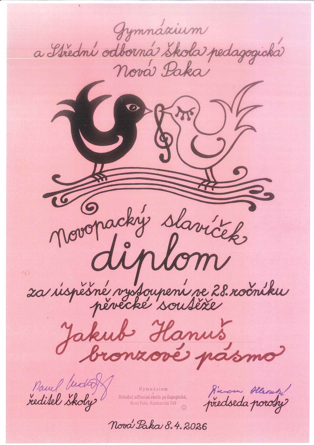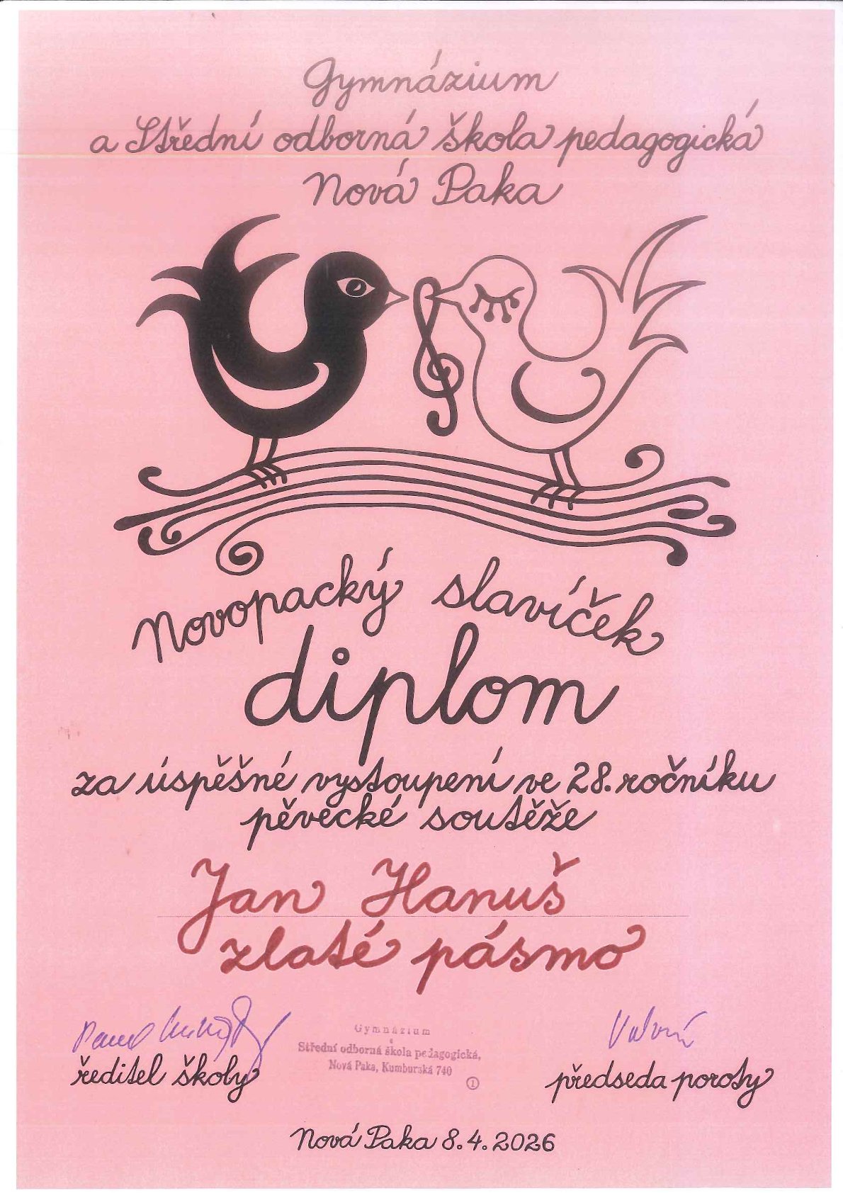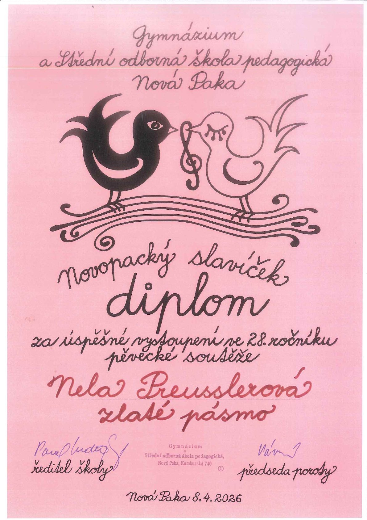 Ve středu 8. dubna jsme se s našimi zpěváčky zúčastnili tradiční pěvecké soutěže Novopacký slavíček.