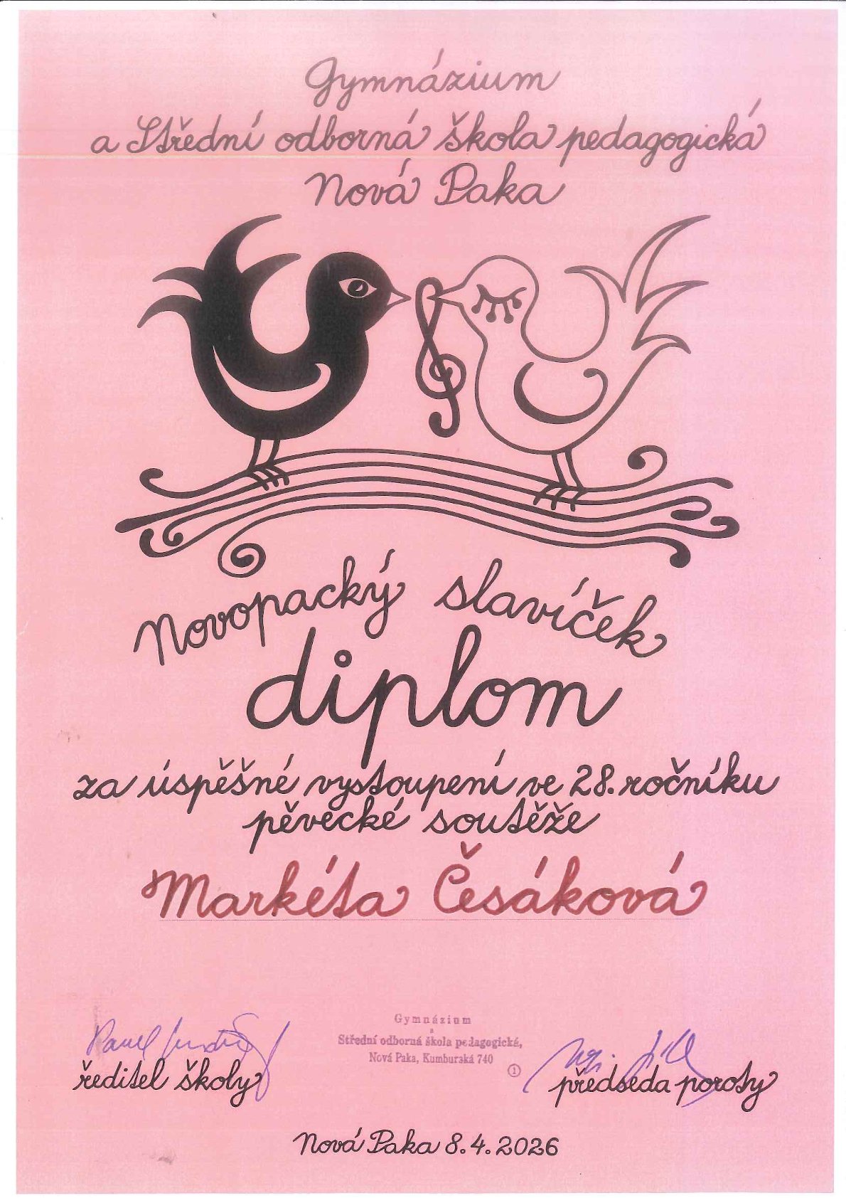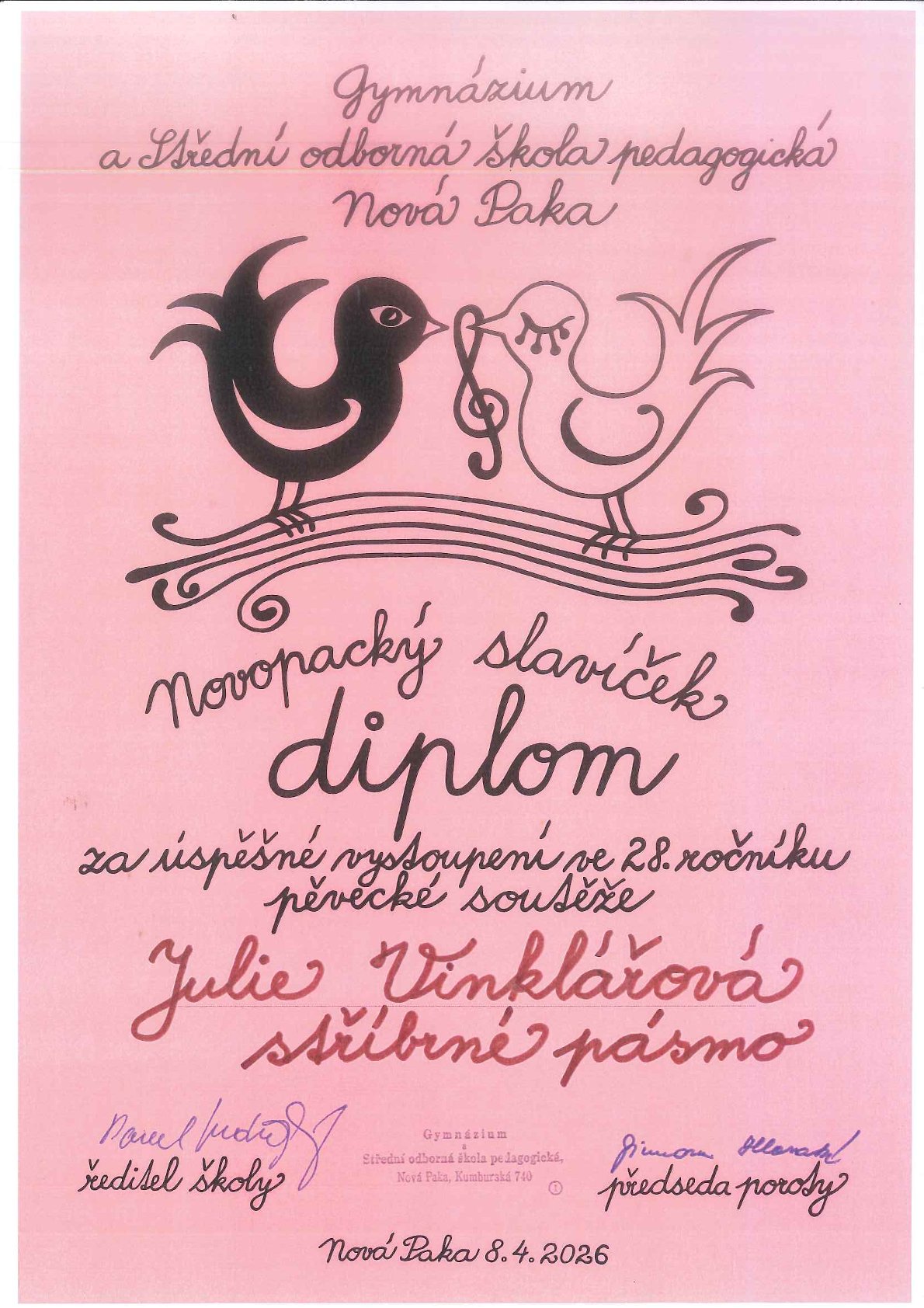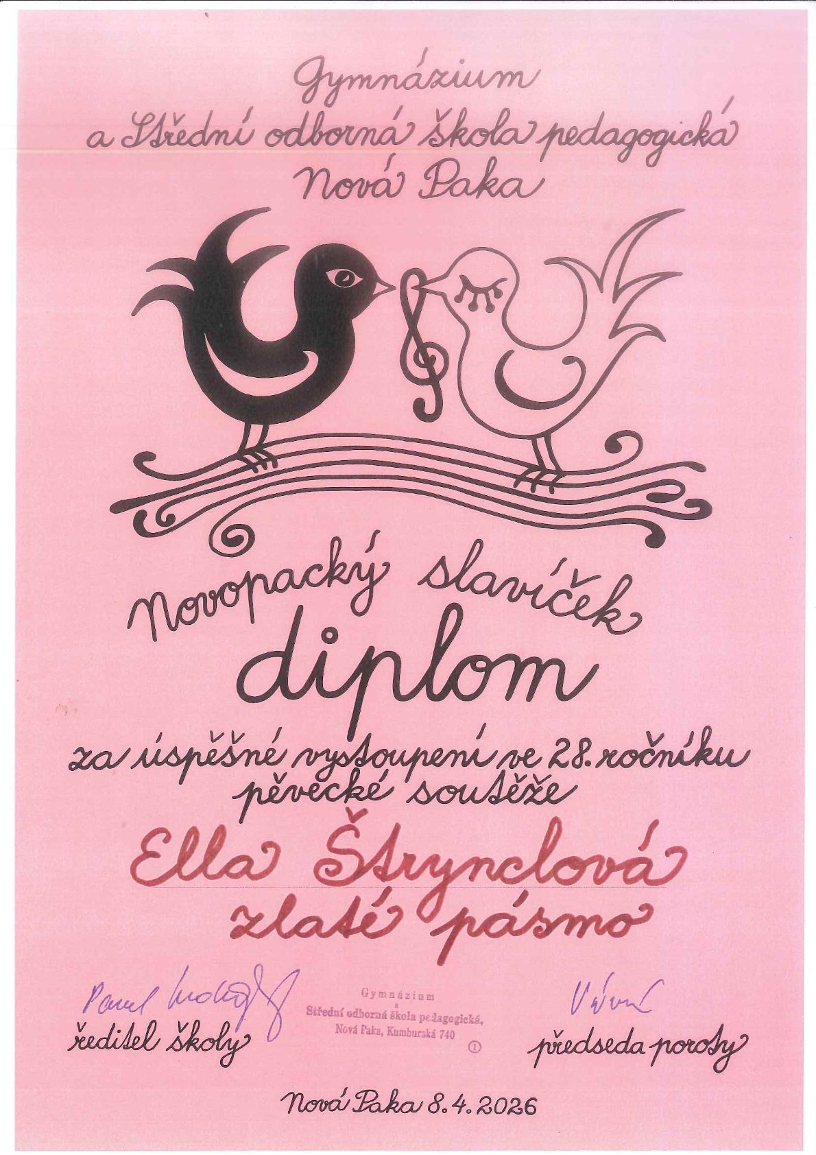 Ve středu 8. dubna jsme se s našimi zpěváčky zúčastnili tradiční pěvecké soutěže Novopacký slavíček.