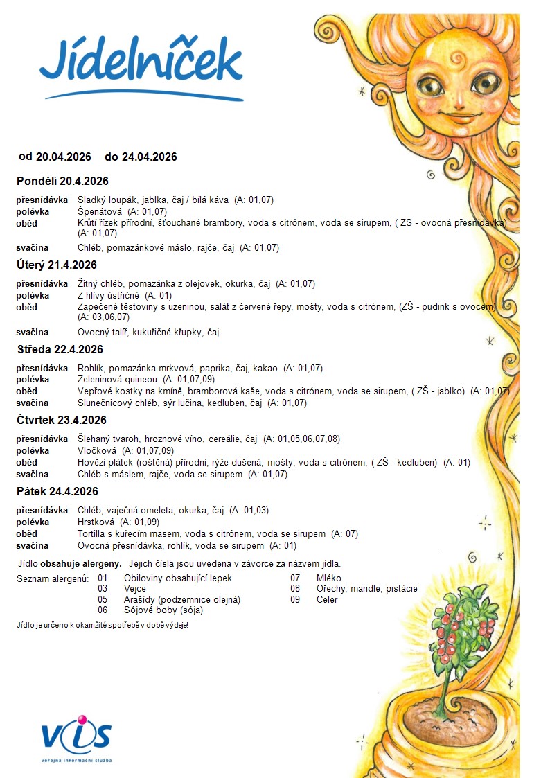 Jídelníček 20.4.- 24.4.2026