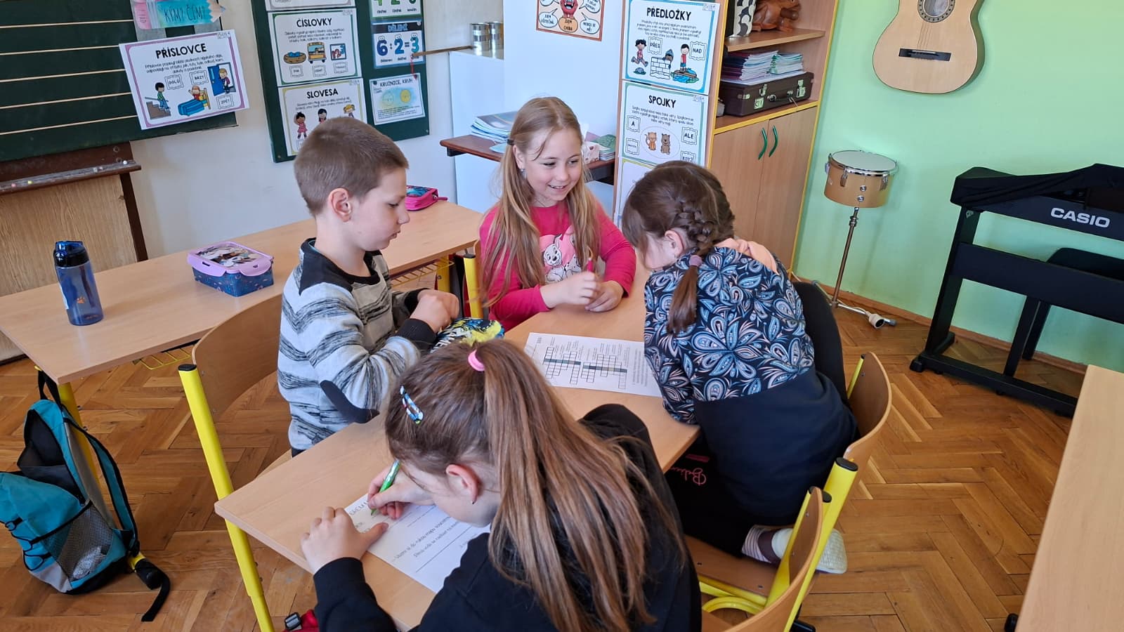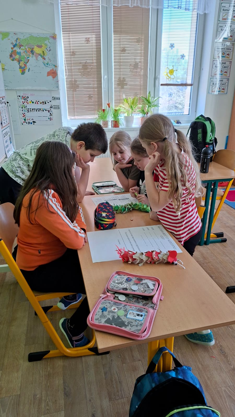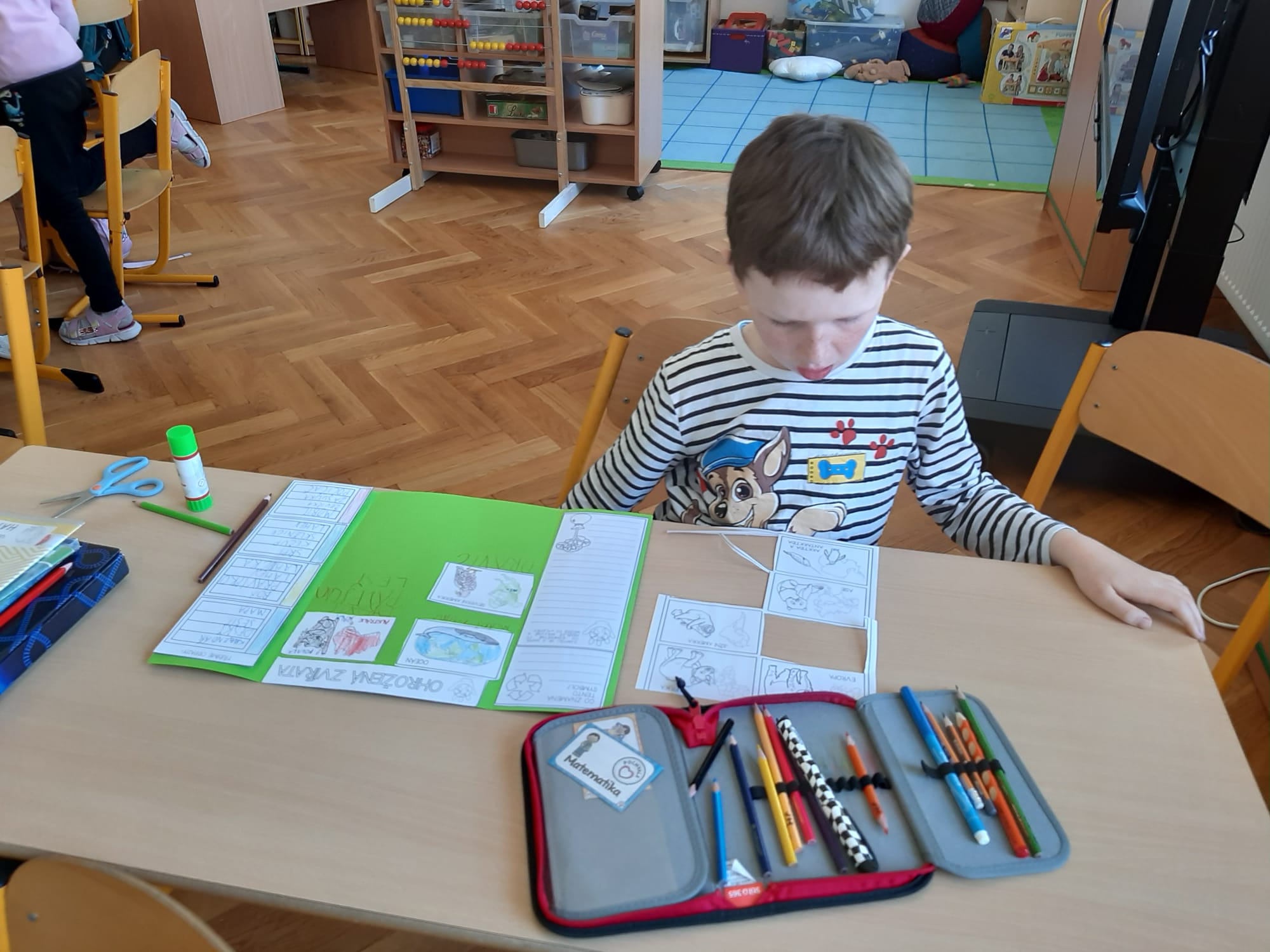 Po návratu do tříd jsme se věnovali tématům ekologie a ochrany přírody. Starší žáci si vyzkoušeli únikovou hru, ve které pomocí indicií odhalovali název ostrova s pitnou vodou. Mladší žáci tvořili lapbooky – třídili odpad a zjišťovali zajímavosti o ohrožených zvířatech.